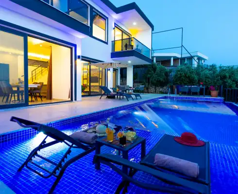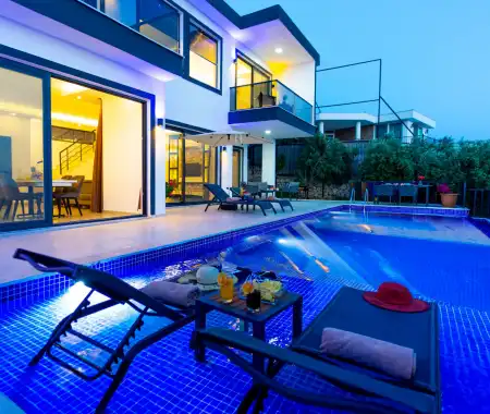 Villamız Antalya’nın en çok tercih edilen tatil bölgesi Kaş/Kalkan Kördere mevkiinde yer almaktadır. Masmavi koylara ve muhteşem adalar manzarasına hakim bir noktadadır. Doğa içerisinde, bol oksijenli tertemiz havasıyla konaklayanlarına sağlıklı ve dingin bir tatilin kapılarını aralamaktadır