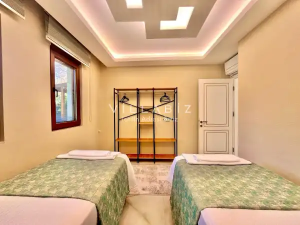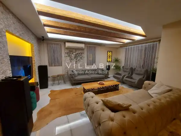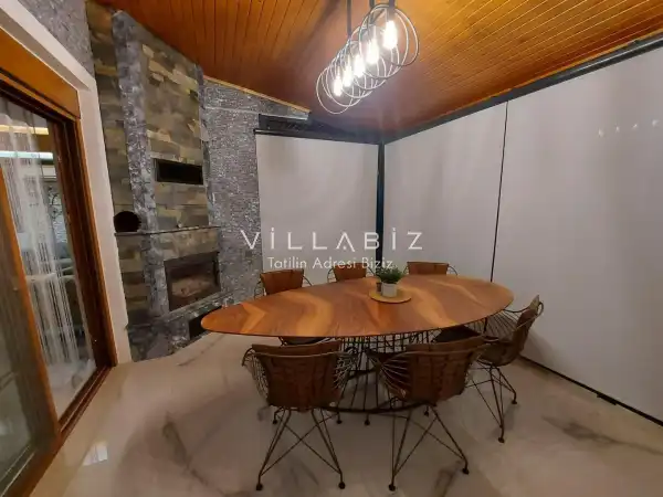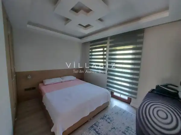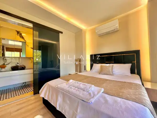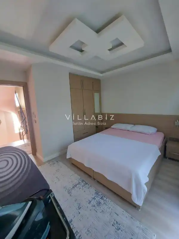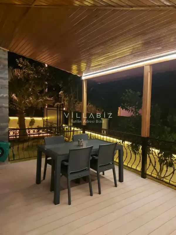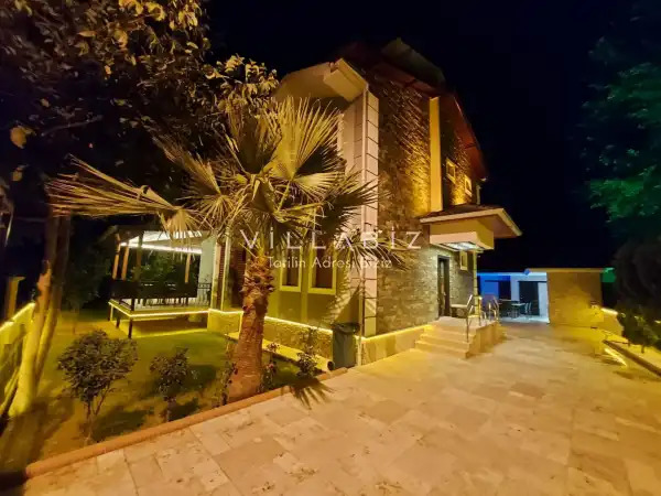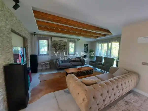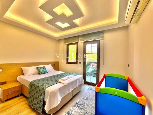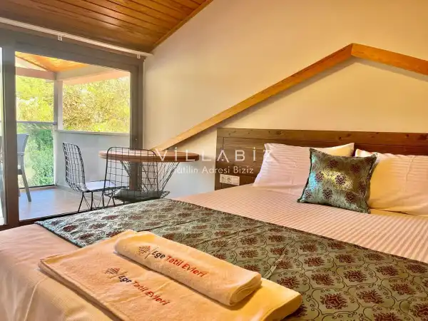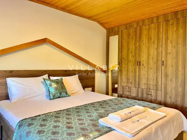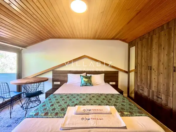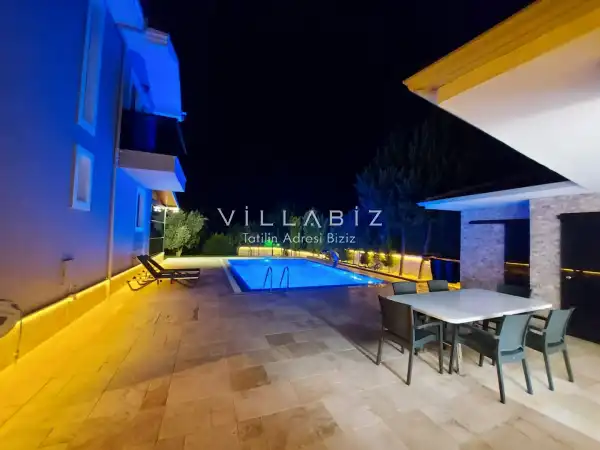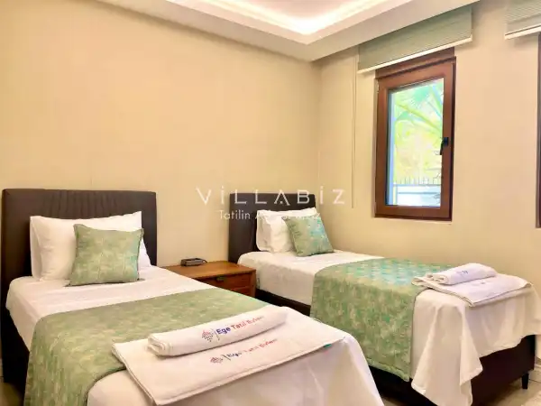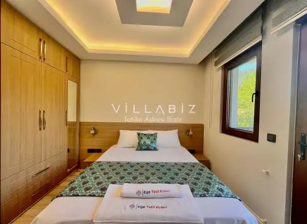 Toplam 5 yatak odasından oluşmuş, 10 kişi konaklama kapasitesine sahiptir. Geniş aileler ve kalabalık arkadaş grupları için oldukça idealdir. Oldukça şık ve modern bir şekilde döşenmiş olan villamızda misafirlerimiz için her şey düşünülmüştür. Havuz terasında bulunan şezlonglarda güneşlenebilir, bahçe masasında muhteşem yemekler yiyebilir, salıncakta sallanıp keyifli dakikalar geçirebilirsiniz.