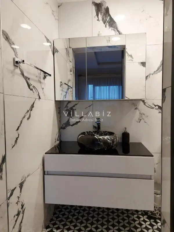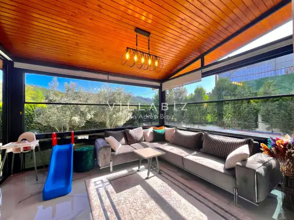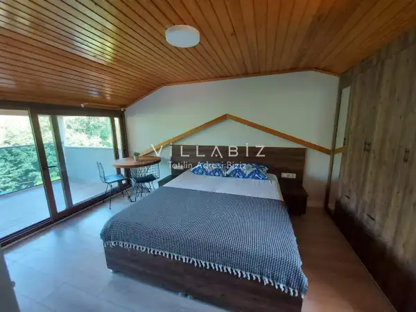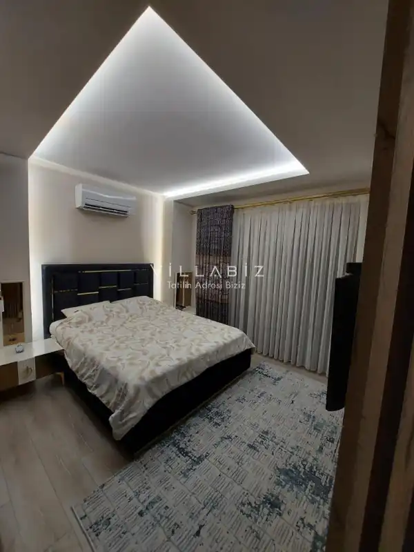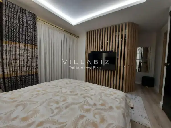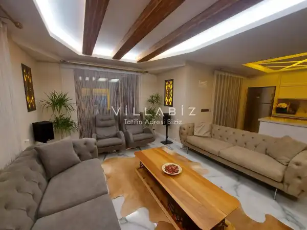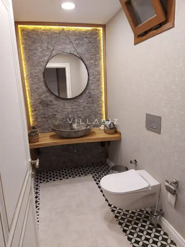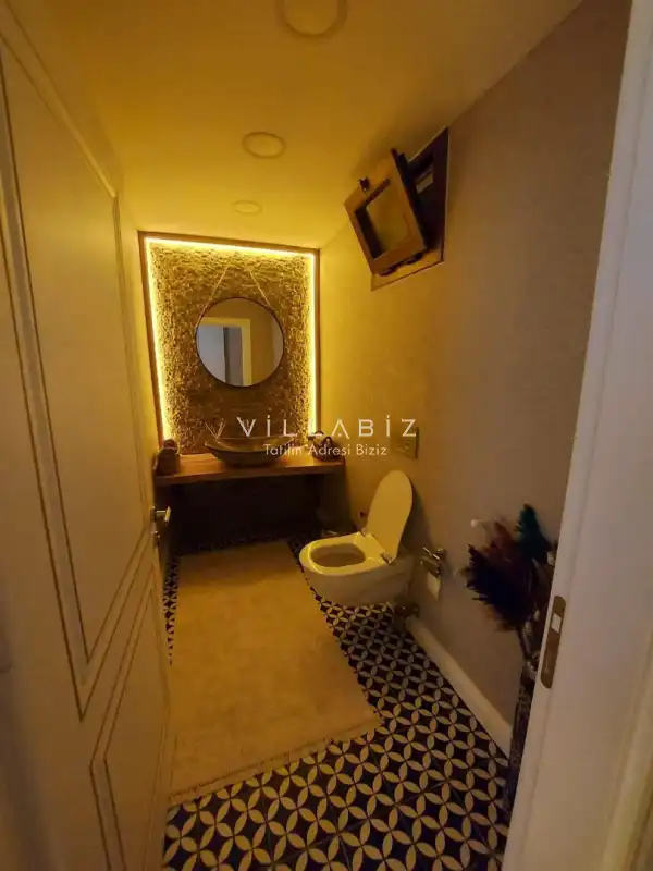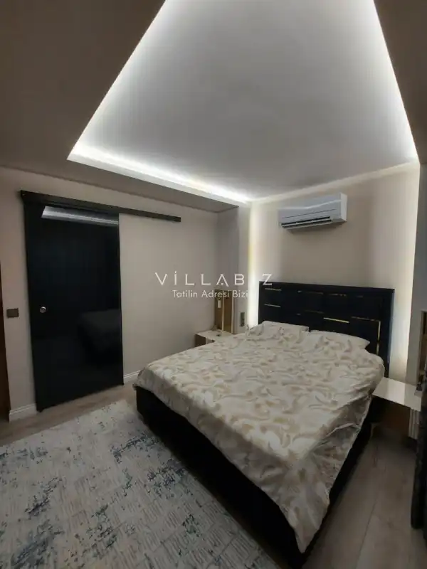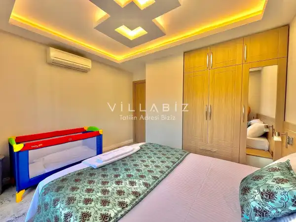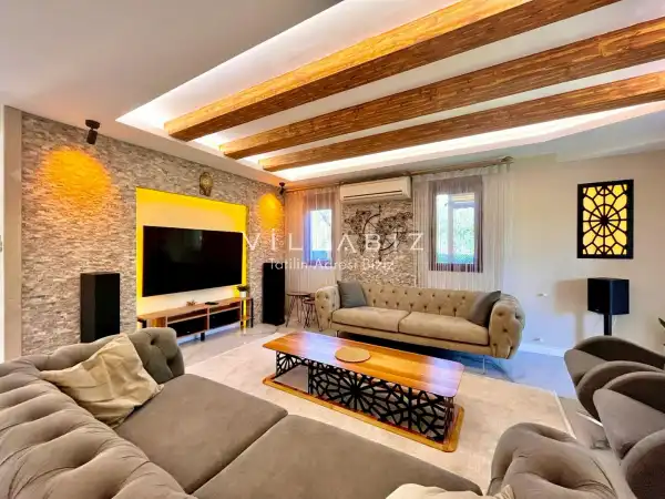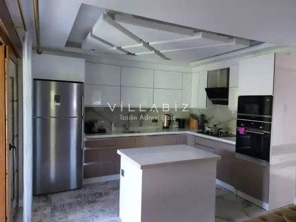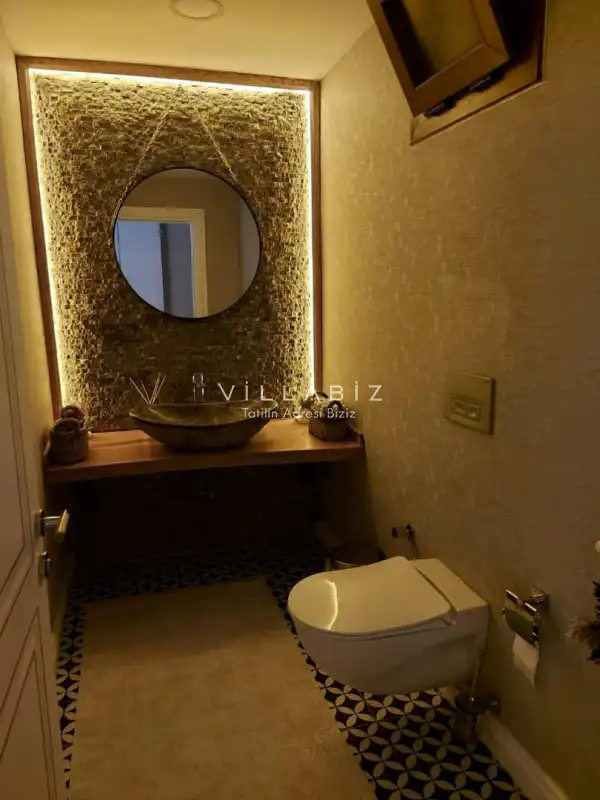 Toplam 5 yatak odasından oluşmuş, 10 kişi konaklama kapasitesine sahiptir. Geniş aileler ve kalabalık arkadaş grupları için oldukça idealdir. Oldukça şık ve modern bir şekilde döşenmiş olan villamızda misafirlerimiz için her şey düşünülmüştür. Havuz terasında bulunan şezlonglarda güneşlenebilir, bahçe masasında muhteşem yemekler yiyebilir, salıncakta sallanıp keyifli dakikalar geçirebilirsiniz.