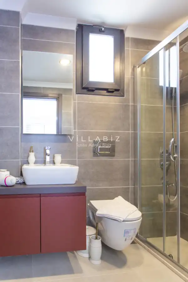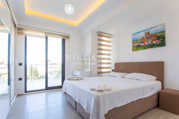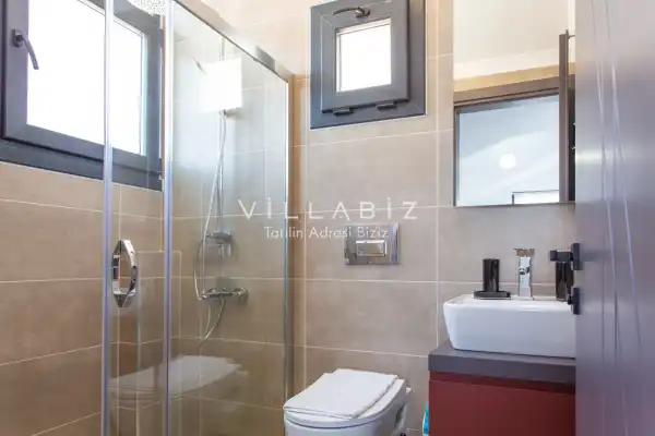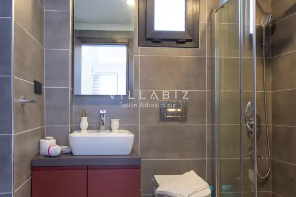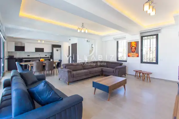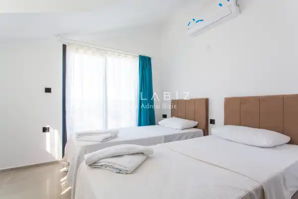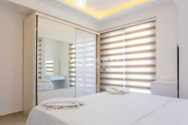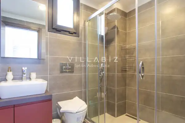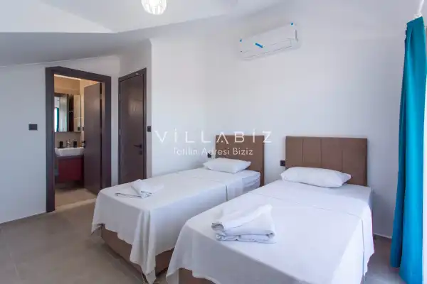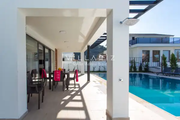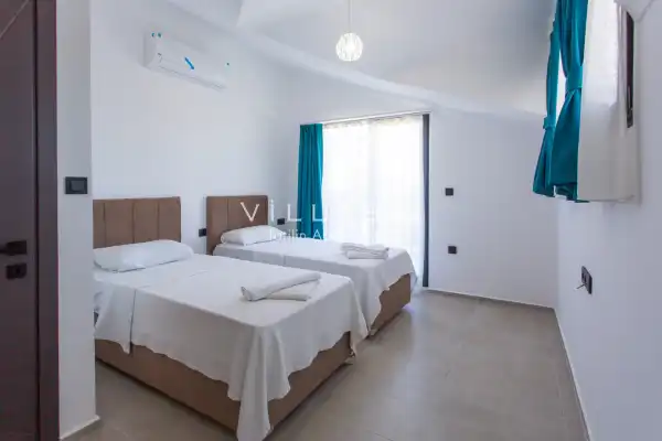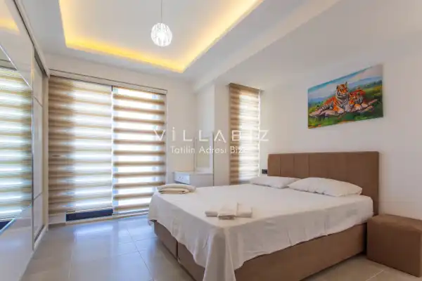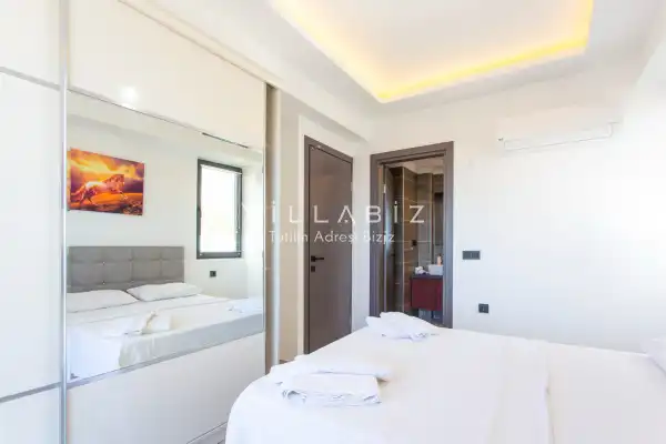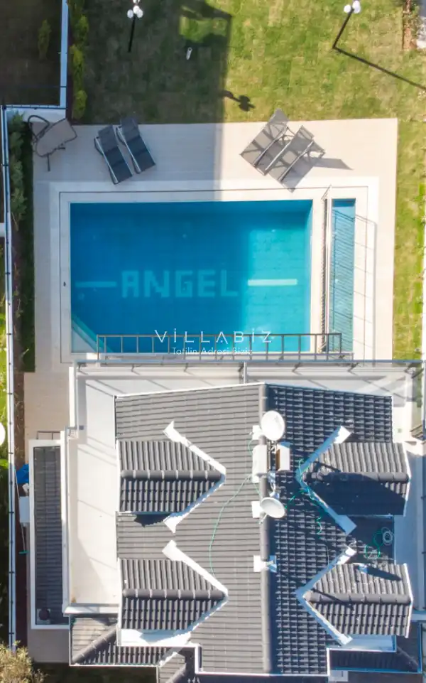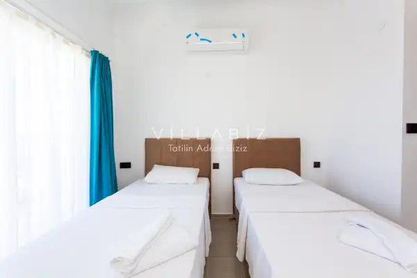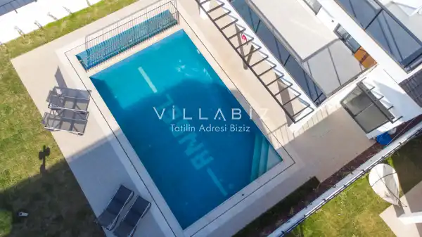 Toplam 4 yatak odasından oluşmuş 8 kişi konaklama kapasitesine sahiptir. Geniş aileler ve kalabalık arkadaş grupları için oldukça idealdir. Oldukça şık ve modern bir şekilde döşenmiş olan villamızda misafirlerimiz için herşey düşünülmüştür. Havuz terasında bulunan şezlonglarda güneşlenebilir, bahçe masasında muhteşem yemekler yiyebilir, salıncakta sallanıp keyifli dakikalar geçirebilirsiniz. Villanın bahçesinde özel havuzun yanında çocuklar için bir de çocuk havuzu mevcut.