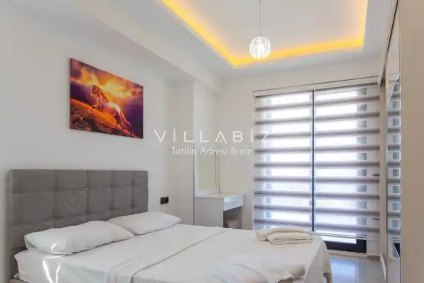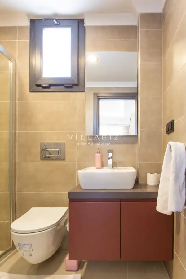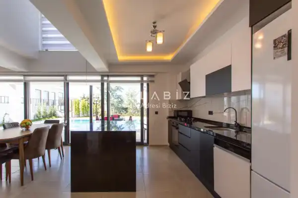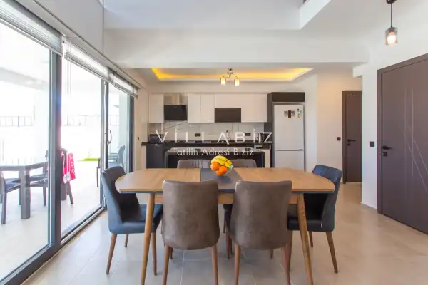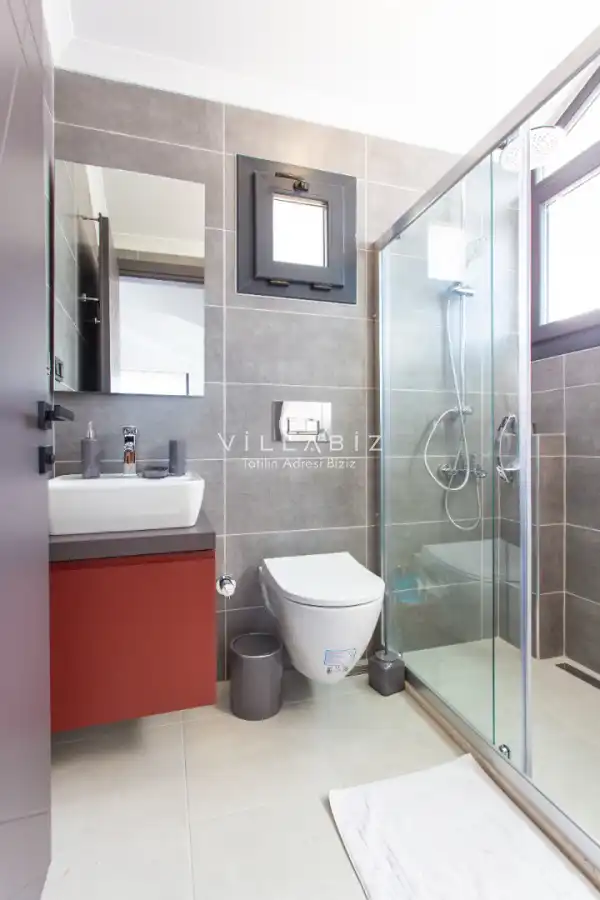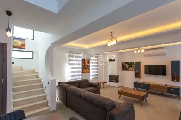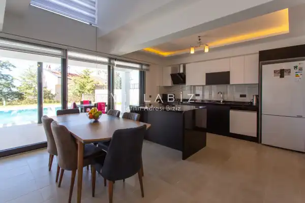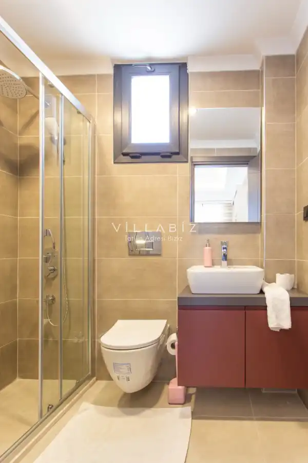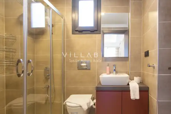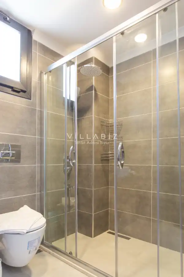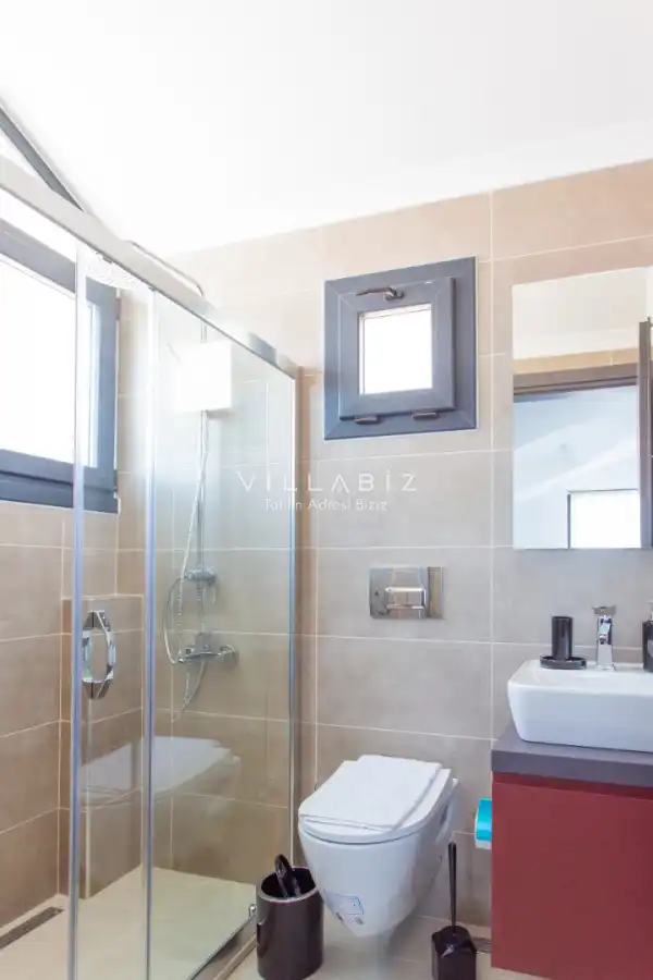Toplam 4 yatak odasından oluşmuş 8 kişi konaklama kapasitesine sahiptir. Geniş aileler ve kalabalık arkadaş grupları için oldukça idealdir. Oldukça şık ve modern bir şekilde döşenmiş olan villamızda misafirlerimiz için herşey düşünülmüştür. Havuz terasında bulunan şezlonglarda güneşlenebilir, bahçe masasında muhteşem yemekler yiyebilir, salıncakta sallanıp keyifli dakikalar geçirebilirsiniz. Villanın bahçesinde özel havuzun yanında çocuklar için bir de çocuk havuzu mevcut.