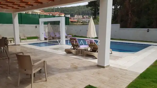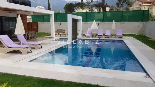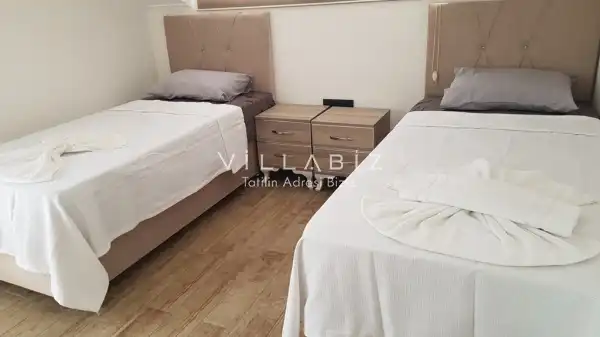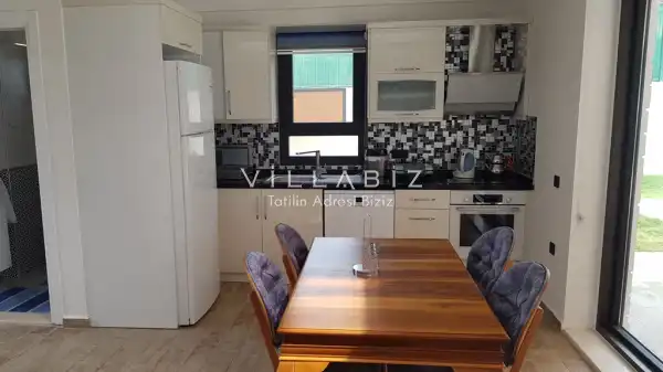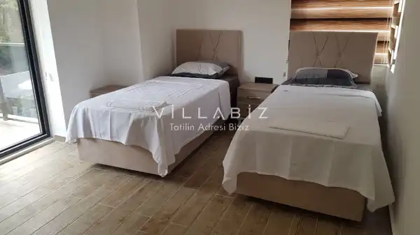 Toplam 4 yatak odasından oluşmuş 8 kişi konaklama kapasitesine sahiptir. Geniş aileler ve kalabalık arkadaş grupları için oldukça idealdir. Oldukça şık ve modern bir şekilde döşenmiş olan villamızda misafirlerimiz için herşey düşünülmüştür. Havuz terasında bulunan şezlonglarda güneşlenebilir, bahçe masasında muhteşem yemekler yiyebilir, salıncakta sallanıp keyifli dakikalar geçirebilirsiniz.Villanın bahçesinde özel havuzun yanında çocuklar için bir de cocuk havuzu mevcuttur.