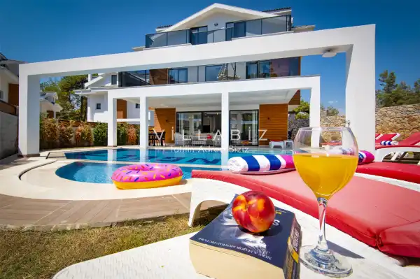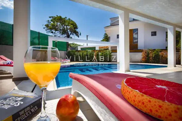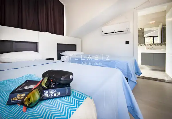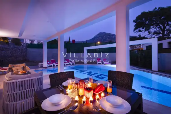 Toplam 4 yatak odasından oluşmuş, 8 kişi konaklama kapasitesine sahiptir. Geniş aileler ve kalabalık arkadaş grupları için oldukça idealdir. Oldukça şık ve modern bir şekilde döşenmiş olan villamızda misafirlerimiz için herşey düşünülmüştür. Havuz terasında bulunan şezlonglarda güneşlenebilir, bahçe masasında muhteşem yemekler yiyebilir, salıncakta sallanıp keyifli dakikalar geçirebilirsiniz.Villanın bahçesinde özel havuzun yanında çocuklar için bir de çocuk havuzu mevcut.