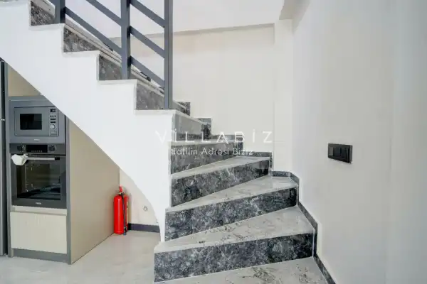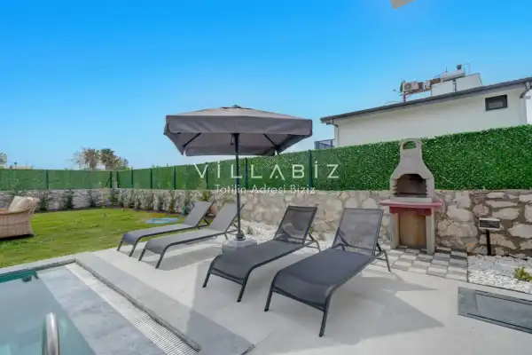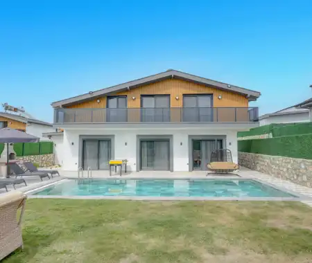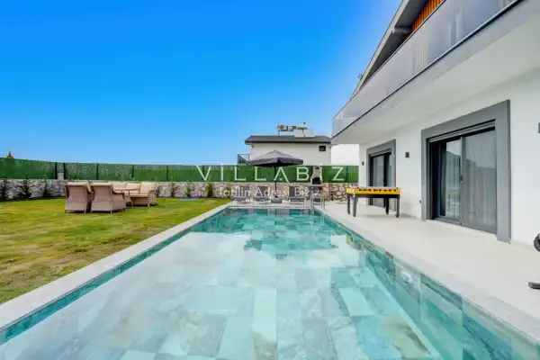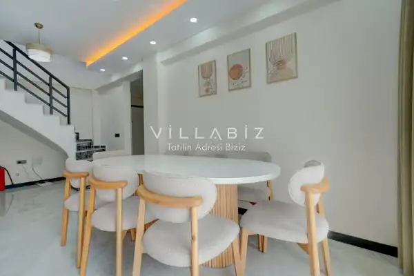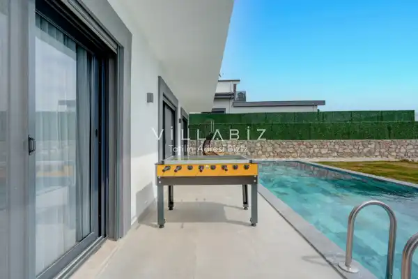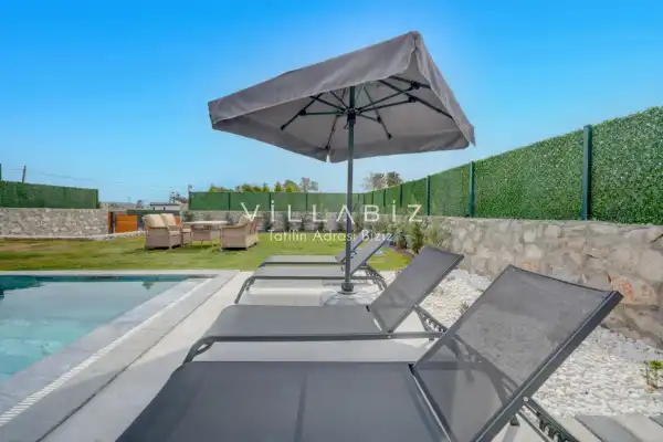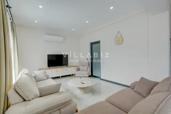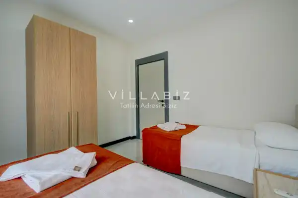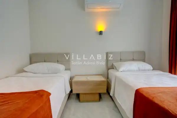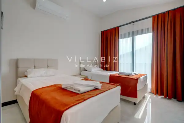 Villa 4 yatak odalı olup 8 kişilik konaklama kapasitesine sahiptir. 1. Yatak odasında konforlu bir çift kişilik yatak, klima, elbise dolabı, jakuzi ve ebeveyn banyosu; 2. Yatak odasında konforlu çift kişilik yatak, klima, elbise dolabı; 3. Yatak odasında bir çift kişilik yatak, klima, elbise dolabı; 4. Yatak odasında konforlu iki tek kişilik yatak, klima ve elbise dolabı bulunmaktadır. Salon bölümünde modern oturma grubu, televizyon, klima ve açık plan tam donanımlı mutfak yer almaktadır. Mutfakta buzdolabı, ocak, fırın, yemek takımları ve temel mutfak ekipmanları eksiksiz şekilde sunulmaktadır.