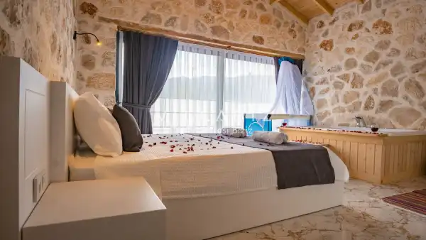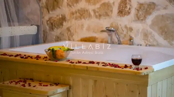 Villamız Antalya’nın Kalkan/Sarıbelen mevkiinde yer almaktadır. Doğa içerisinde ki sessiz ve 5 yıldızlı otellerin gürültüsünden uzakta ki konumuyla, doğanın ilham verici dinginliğinde bir tatil imkanı sunmaktadır. Otantik yapısı ve tarihi dokusuna önem verilerek dizayn edilmiş mobilyalarıyla, ev konforunda huzurlu bir tatilin kapılarını aralamaktadır.