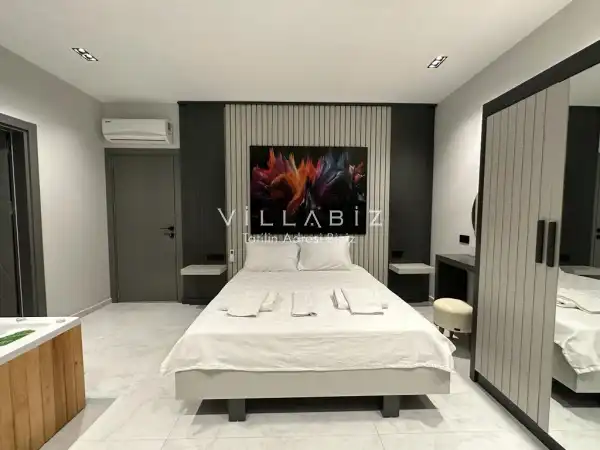 Muhteşem bir deniz manzarasına sahip olan villamız havuz terasının korunaklı yapısından dolayı ve Geniş aileler ve arkadaş grupları için oldukça idealdir. Sevdiklerinizle birlikte günbatımına karşı içeceklerinizi yudumlayıp manzaranın tadını çıkarabilirsiniz. Villamızda bulunan jakuzi ise rahatlayıp tüm yılın yorgunluğunu üzerinizden atmanıza yardımcı olacaktır.
