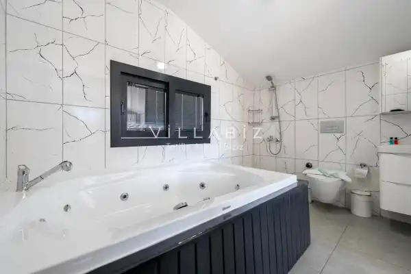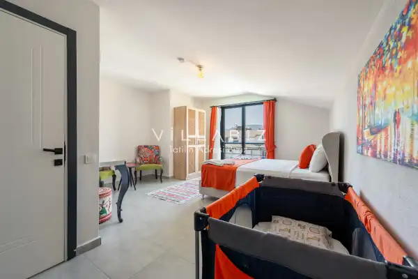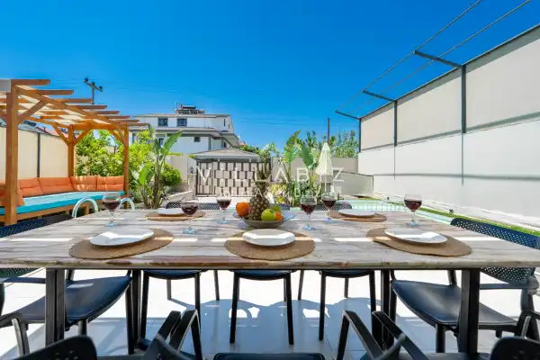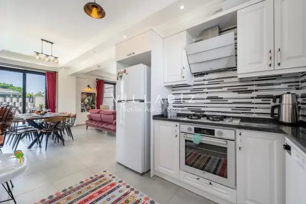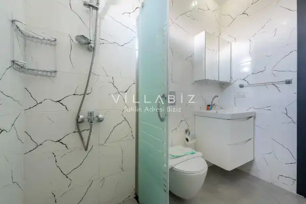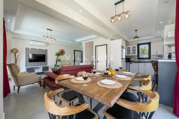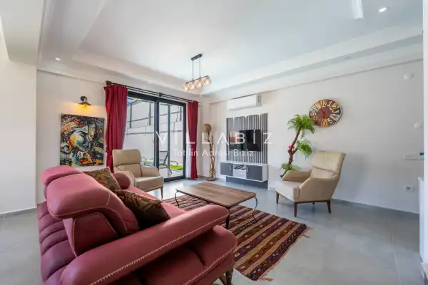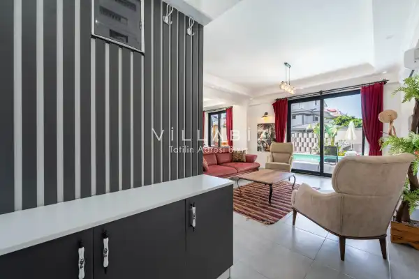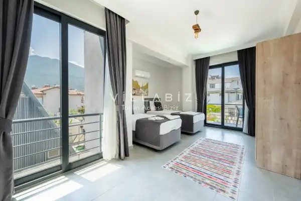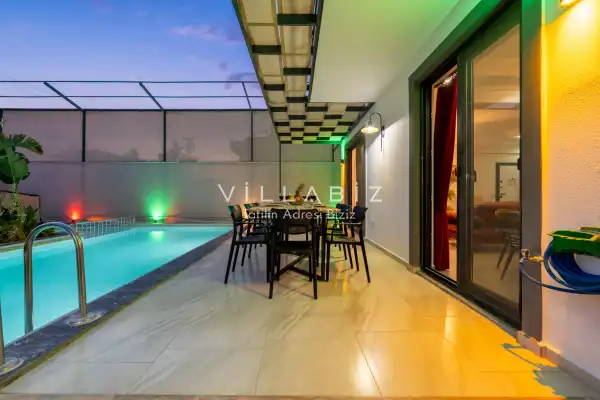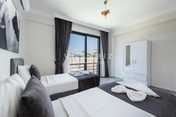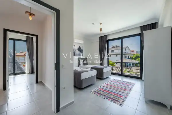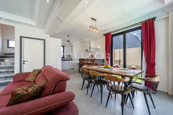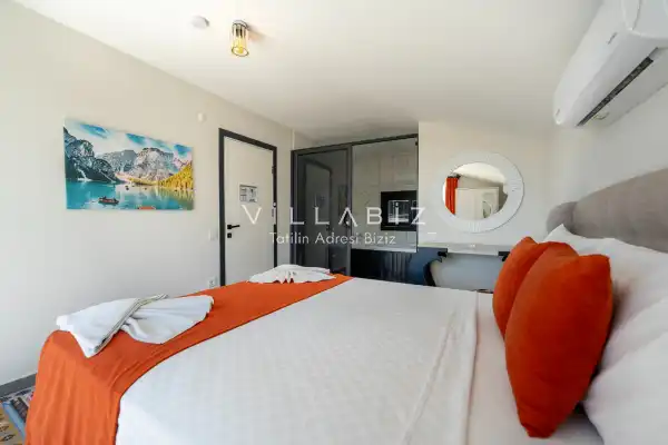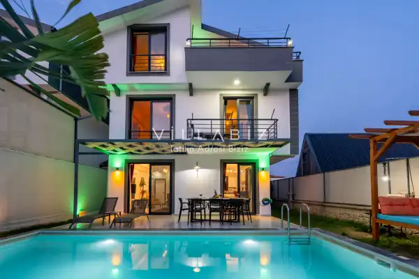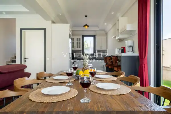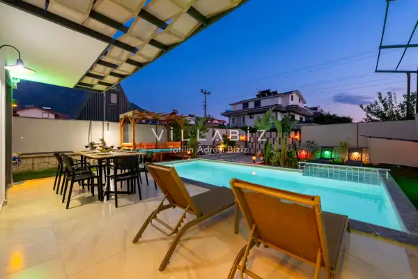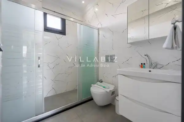 Toplam 4 yatak odasından oluşmuş, 8 kişi konaklama kapasitesine sahiptir. Geniş aileler ve kalabalık arkadaş grupları için oldukça idealdir. Oldukça şık ve modern bir şekilde döşenmiş olan villamızda misafirlerimiz için her şey düşünülmüştür. Havuz terasında bulunan şezlonglarda güneşlenebilir, bahçe masasında muhteşem yemekler yiyebilir, salıncakta sallanıp keyifli dakikalar geçirebilirsiniz.