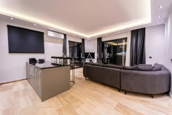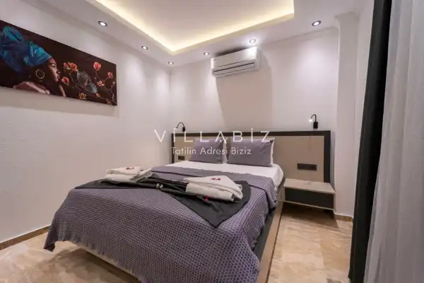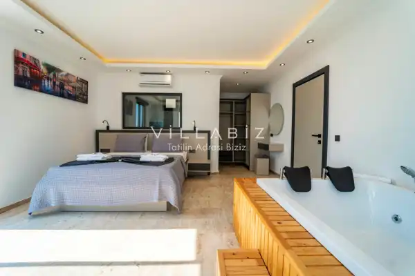 Villamız Antalya’nın en çok tercih edilen tatil bölgesi Kaş Gökçeören mevkiinde yer almaktadır. Masmavi koylara ve muhteşem adalar manzarasına hakim bir noktadadır. Doğa içerisinde, bol oksijenli tertemiz havasıyla konaklayanlarına sağlıklı ve dingin bir tatilin kapılarını aralamaktadır. Toplam 8 kişi konaklama kapasitesine sahiptir. Geniş aileler ve kalabalık arkadaş grupları için oldukça idealdir. Oldukça şık ve modern bir şekilde döşenmiş olan villamızda misafirlerimiz için her şey düşünülmüştür. Havuz terasında bulunan şezlonglarda güneşlenebilir, bahçe masasında muhteşem yemekler yiyebilir, salıncakta sallanıp keyifli dakikalar geçirebilirsiniz.