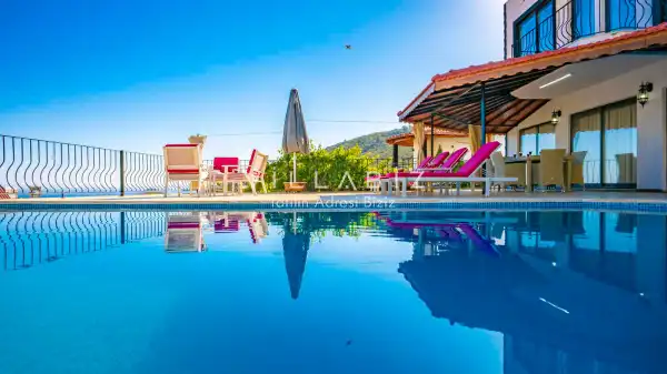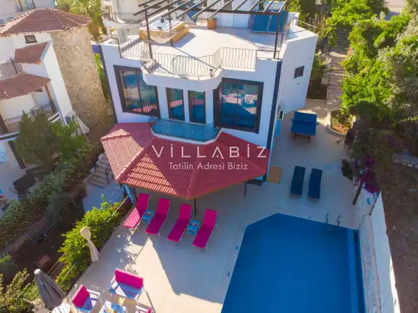 Villamız Antalya’nın en çok tercih edilen tatil bölgesi Kalkan mevkiinde yer almaktadır. Masmavi koylara ve muhteşem adalar manzarasına hakim bir noktadadır. Doğa içerisinde, bol oksijenli tertemiz havasıyla konaklayanlarına sağlıklı ve dingin bir tatilin kapılarını aralamaktadır