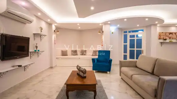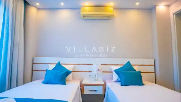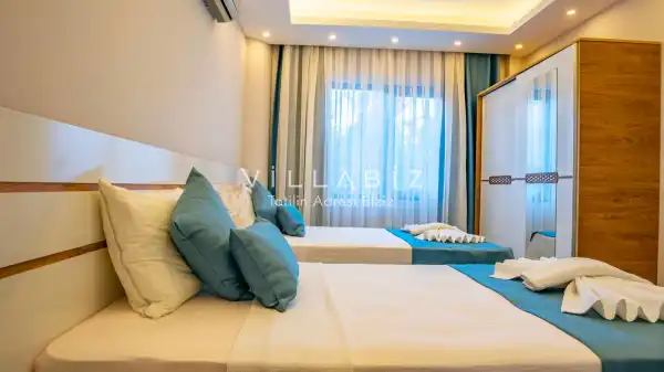 Toplam 4  yatak odasından oluşmuş, 8 kişi konaklama kapasitesine sahiptir. Geniş aileler ve kalabalık arkadaş grupları için oldukça idealdir. Oldukça şık ve modern bir şekilde döşenmiş olan villamızda misafirlerimiz için herşey düşünülmüştür. Havuz terasında bulunan şezlonglarda güneşlenebilir, bahçe masasında muhteşem yemekler yiyebilir, salıncakta sallanıp keyifli dakikalar geçirebilirsiniz.