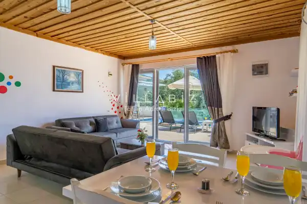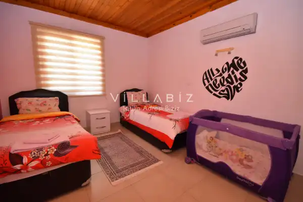 Toplam 2 yatak odasından oluşmuş, 4 kişi konaklama kapasitesine sahiptir. Geniş aileler ve kalabalık arkadaş grupları için oldukça idealdir. Oldukça şık ve modern bir şekilde döşenmiş olan villamızda misafirlerimiz için her şey düşünülmüştür. Havuz terasında bulunan şezlonglarda güneşlenebilir, bahçe masasında muhteşem yemekler yiyebilir, salıncakta sallanıp keyifli dakikalar geçirebilirsiniz.