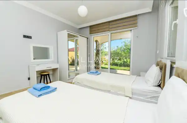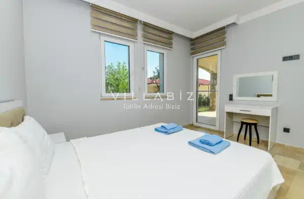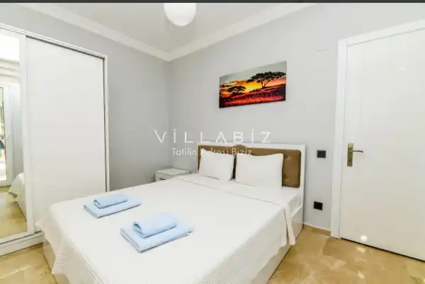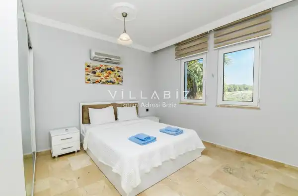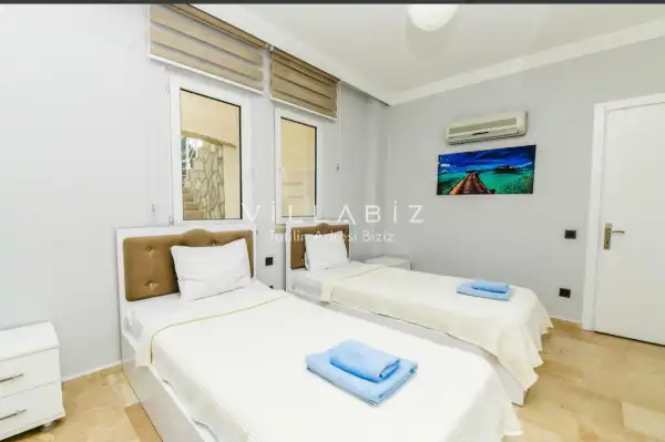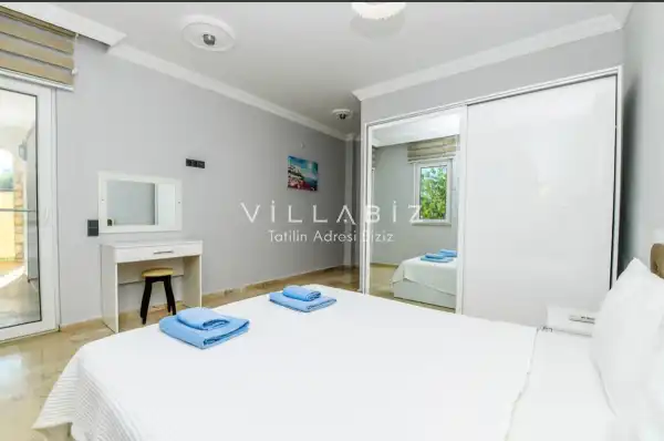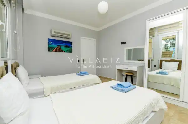 Villa 4 yatak odalı olup 8 kişilik konaklama kapasitesine sahiptir. 1. Yatak odasında konforlu çift kişilik yatak, klima, elbise dolabı, jakuzi ve ebeveyn banyosu; 2. Yatak odasında konforlu birçift kişilik yatak, klima, elbise dolabı ve ebeveyn banyosu; 3. Yatak odasında iki adet tek kişilik yatak, klima, elbise dolabı ve ebeveyn banyosu; 4. Yatak odasında iki adet tek kişilik yatak, klima, elbise dolabı ve ebeveyn banyosu bulunmaktadır. Salon bölümünde modern oturma grubu, televizyon, klima ve açık plan tam donanımlı mutfak ve banyo yer alır. Mutfakta buzdolabı, ocak, fırın, bulaşık makinesi, yemek takımları ve ihtiyaç duyulan tüm temel mutfak ekipmanları eksiksiz şekilde sunulmaktadır.