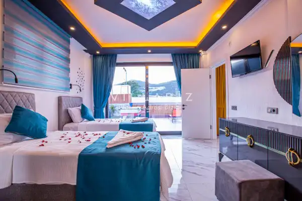 BölgeKalkan Kiralık Villa / SarıbelenMesafe villanın bulunduğu alanı gösterir. Tam konum reservasyon sonrası gösterilir.