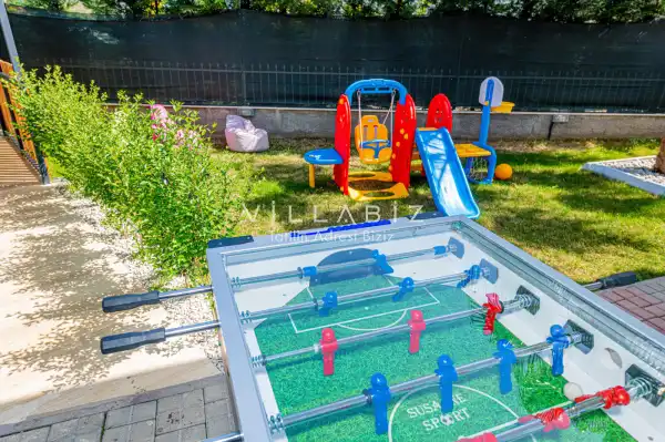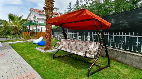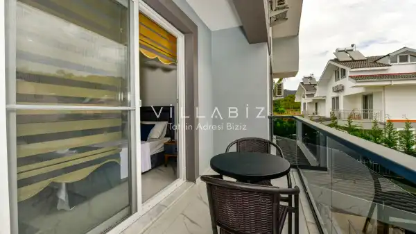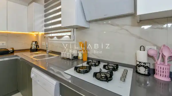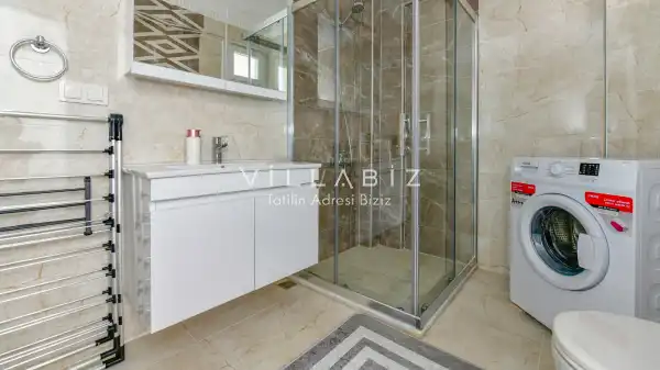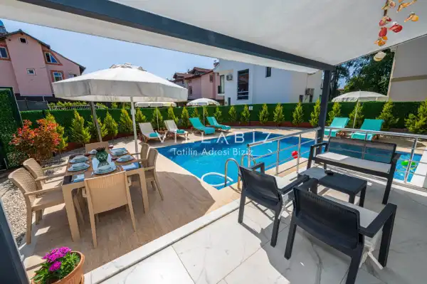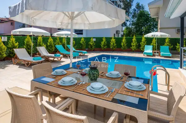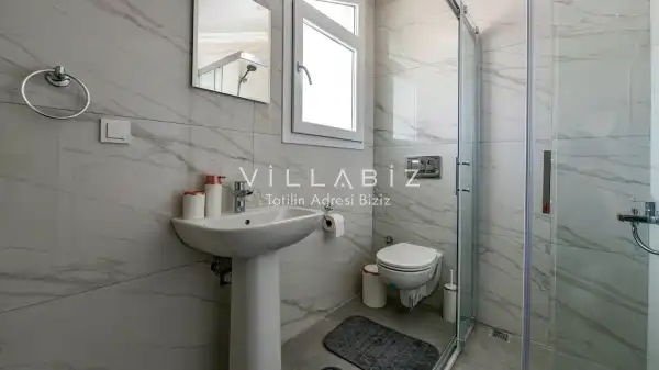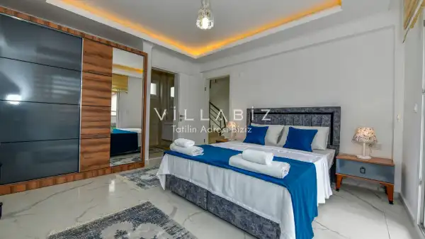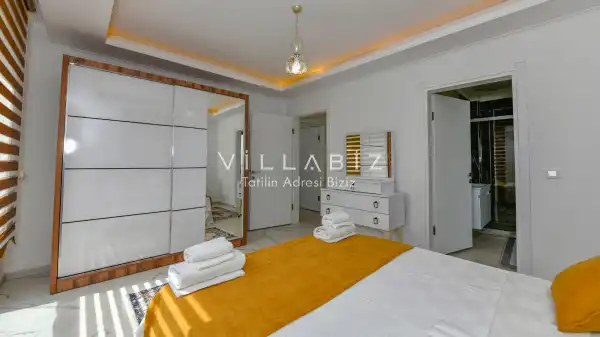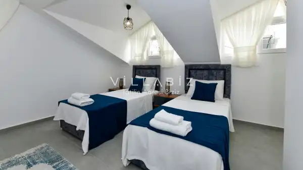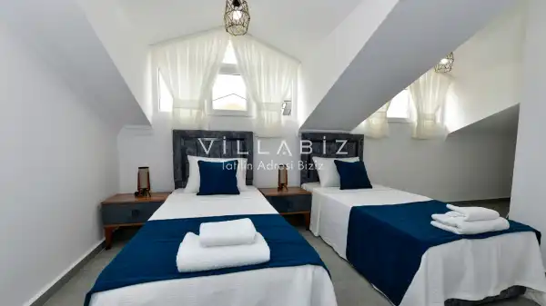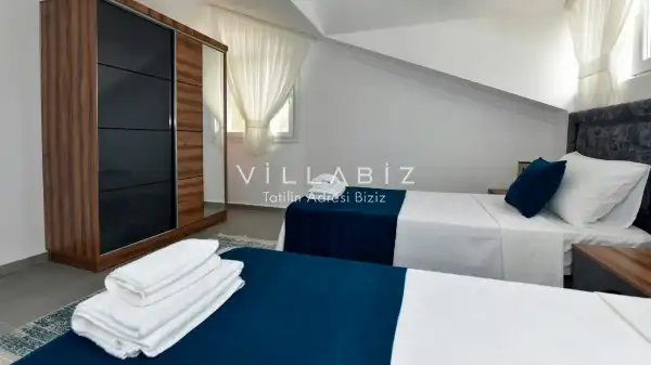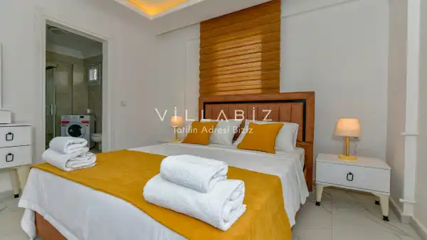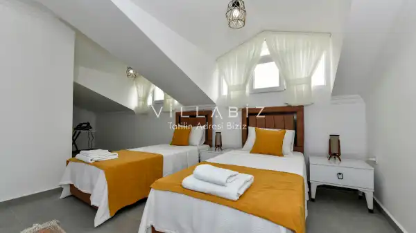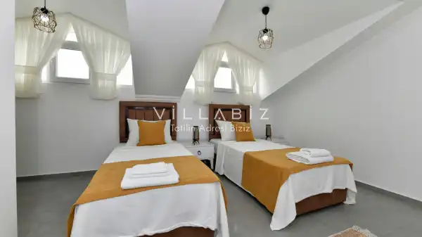 Toplam 4 yatak odasından oluşmuş, 9 kişi konaklama kapasitesine sahiptir. Geniş aileler ve kalabalık arkadaş grupları için oldukça idealdir. Oldukça şık ve modern bir şekilde döşenmiş olan villamızda misafirlerimiz için herşey düşünülmüştür. Havuz terasında bulunan şezlonglarda güneşlenebilir, bahçe masasında muhteşem yemekler yiyebilir, salıncakta sallanıp keyifli dakikalar geçirebilirsiniz.
