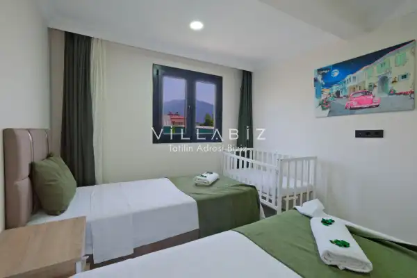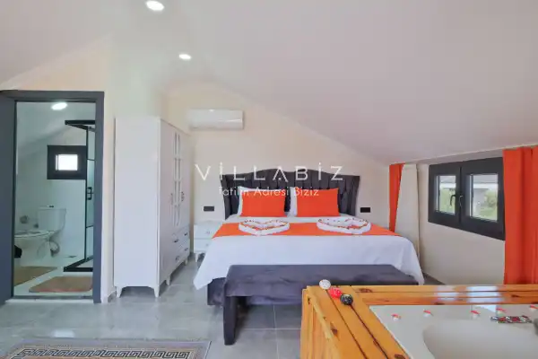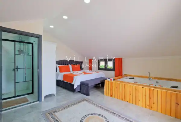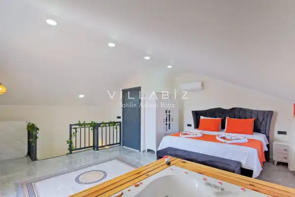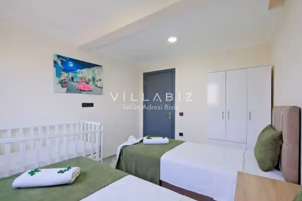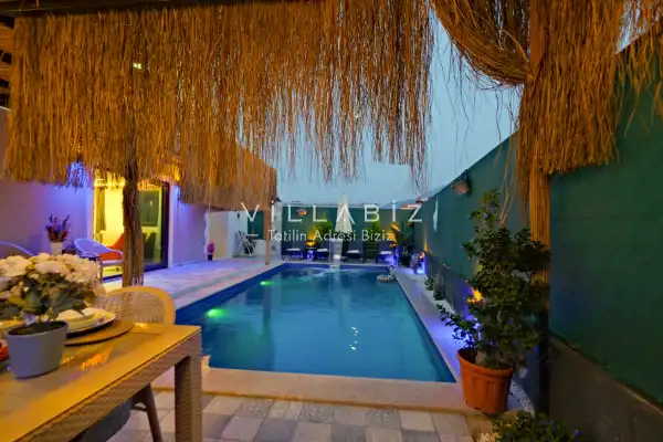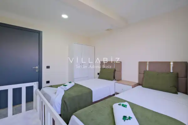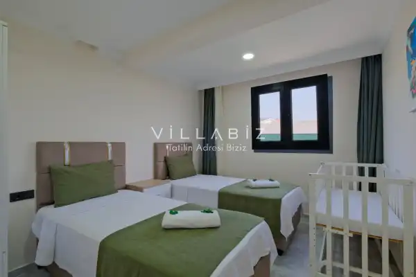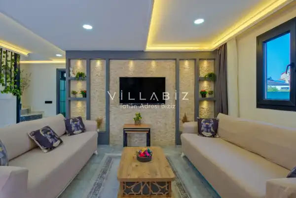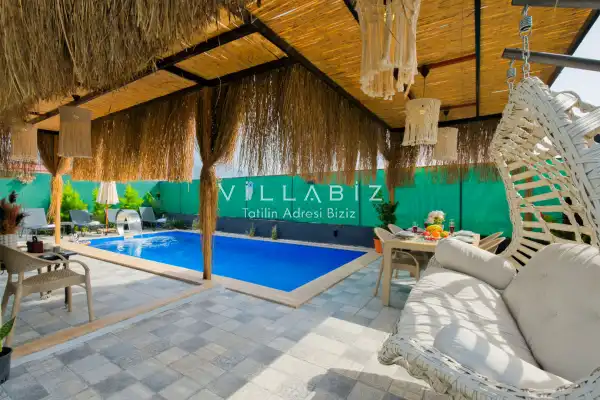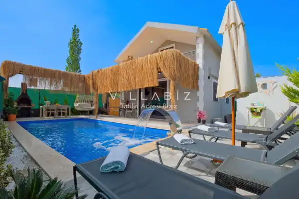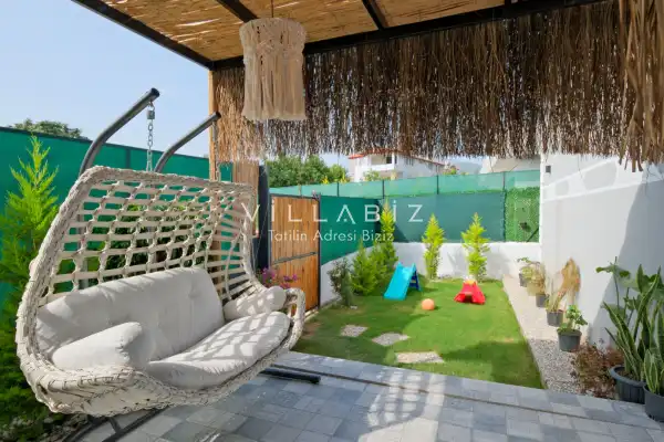 Toplam 2 yatak odasından oluşmuş, 4 kişi konaklama kapasitesine sahiptir. Çekirdek aileler ve arkadaş grupları için oldukça idealdir. Oldukça şık ve modern bir şekilde döşenmiş olan villamızda misafirlerimiz için her şey düşünülmüştür. Havuz terasında bulunan şezlonglarda güneşlenebilir, bahçe masasında muhteşem yemekler yiyebilir, salıncakta sallanıp keyifli dakikalar geçirebilirsiniz.