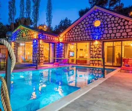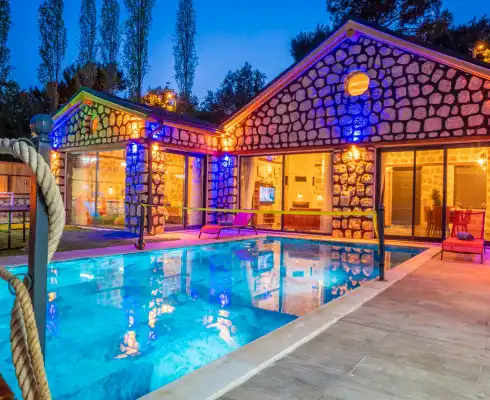 Villamız Kaş/Kalkan tatil beldesinin sakin konumlarından İslamlar mevkiinde yer almaktadır. Son yılların villa tatili gözdesi olmuş, etrafı ormanlarla çevrili, merkeze araçla 5 dakikada ulaşabildiğiniz konumu ve muhteşem manzarasıyla konaklayanlarına lüks bir tatil imkanı sağlamaktadır.