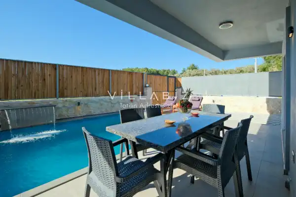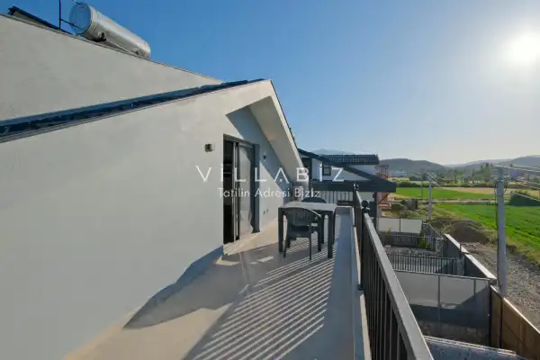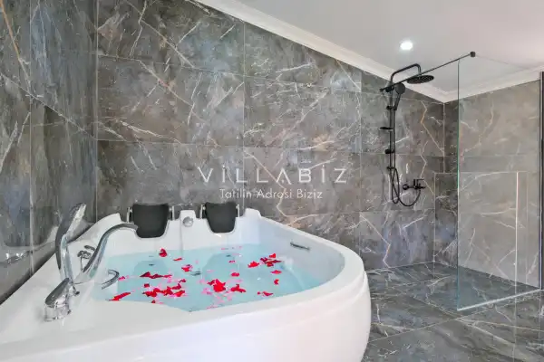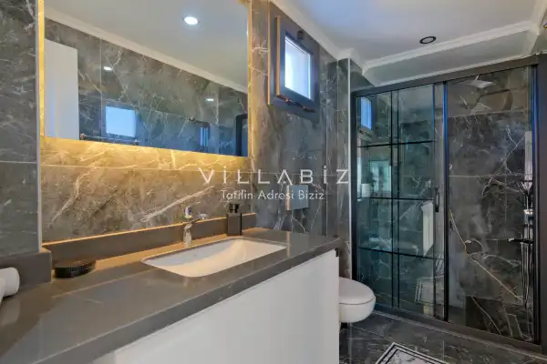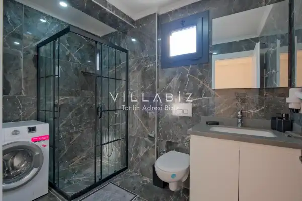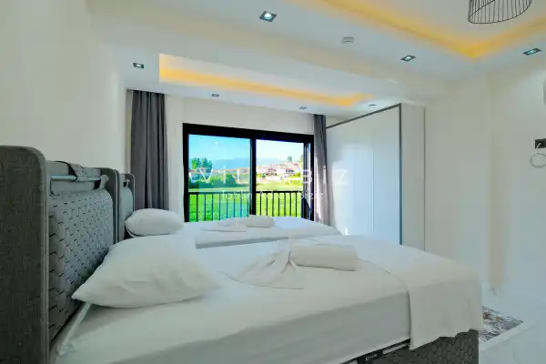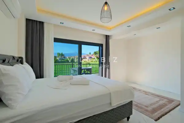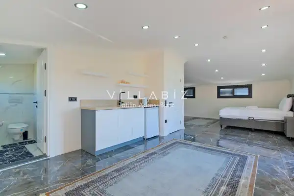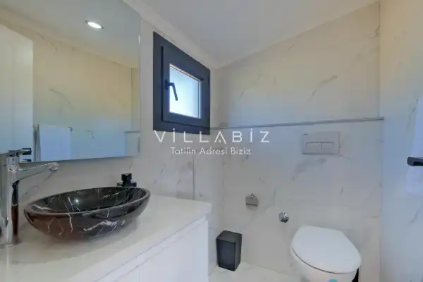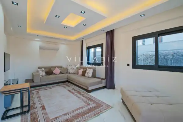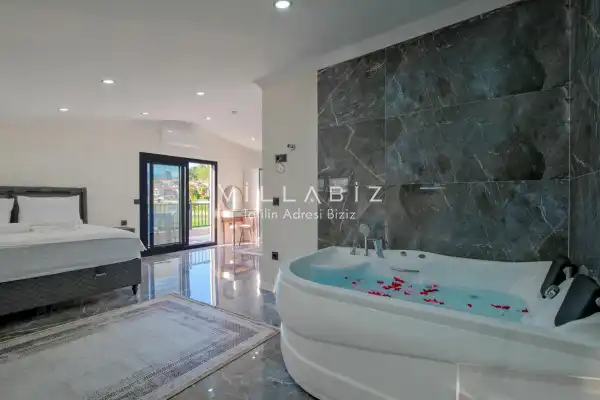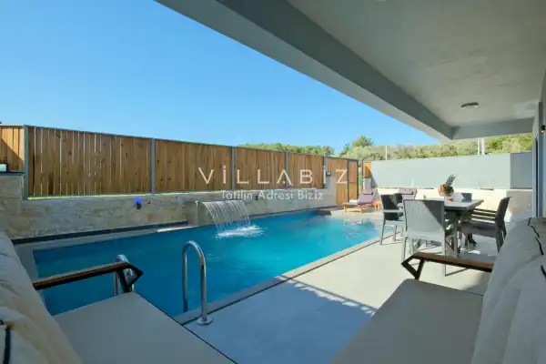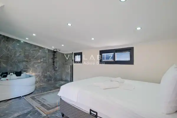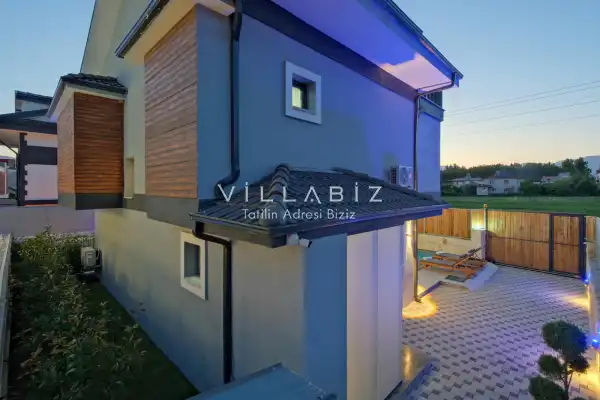 Toplam 3 yatak odasından oluşmuş, 6 kişi konaklama kapasitesine sahiptir. Geniş aileler ve kalabalık arkadaş grupları için oldukça idealdir. Oldukça şık ve modern bir şekilde döşenmiş olan villamızda misafirlerimiz için her şey düşünülmüştür. Havuz terasında bulunan şezlonglarda güneşlenebilir, bahçe masasında muhteşem yemekler yiyebilir, salıncakta sallanıp keyifli dakikalar geçirebilirsiniz.