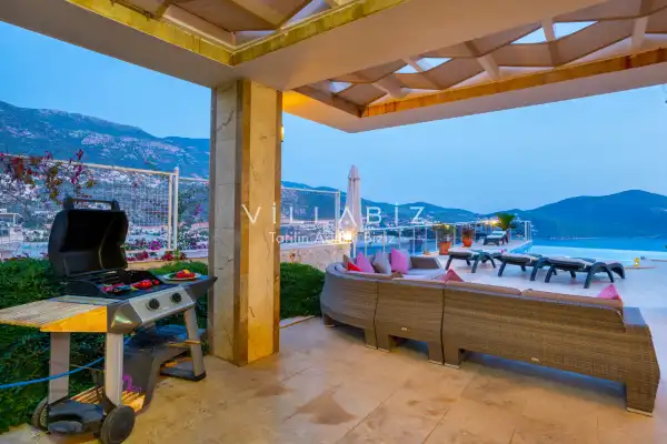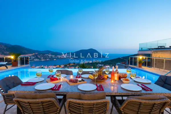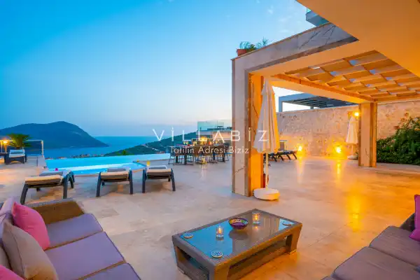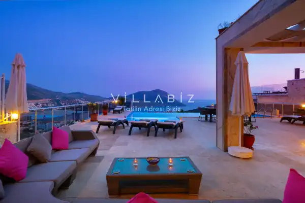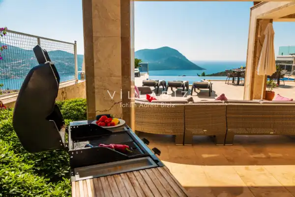Kalkan Ortaalan Bölgesi'nde yer alan muhteşem deniz manzarasına sahip villamız, Villa Buse Age, 10 kişilik kapasiteye sahip villada 5 yatak odası yer alıyor. Villanın birer banyosu ve jakuzisi mevcut. Açık mutfağı ve kendine ait bahçesinde bir havuzu var. Mutfağında bulaşık makinesi, buzdolabı, ankastre fırın, tost makinesi ve mutfakta ihtiyaç olan hemen hemen bütün gereçler bulunuyor. Barbekü, masa, sandalyeler, şezlonglar ve şemsiyeler bahçe keyfini sınırsız yaşamanıza imkan tanıyor. Salonunda oturma grubu, televizyon, eşyalar bulunurken, tüm odalar için ayrı klima imkanı var.Villa Buse Age 10 kişilik kapasiteye sahip villada 5 yatak odası yer alıyor. Villanın birer banyosu ve jakuzisi mevcut. Açık mutfağı ve kendine ait bahçesinde bir havuzu var. Mutfağında bulaşık makinesi, buzdolabı, ankastre fırın, tost makinesi ve mutfakta ihtiyaç olan hemen hemen bütün gereçler bulunuyor. Barbekü, masa, sandalyeler, şezlonglar ve şemsiyeler bahçe keyfini sınırsız yaşamanıza imkan tanıyor. Salonunda oturma grubu, televizyon, eşyalar bulunurken, tüm odalar için ayrı klima imkanı var.