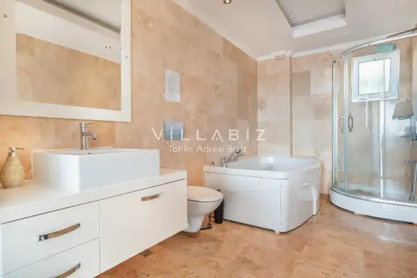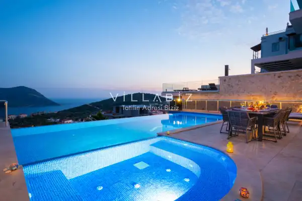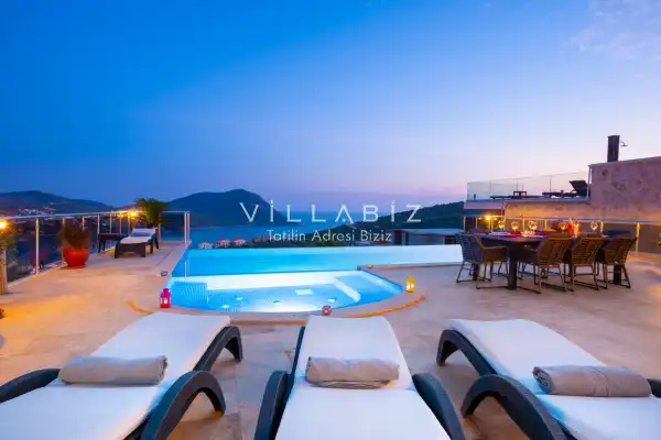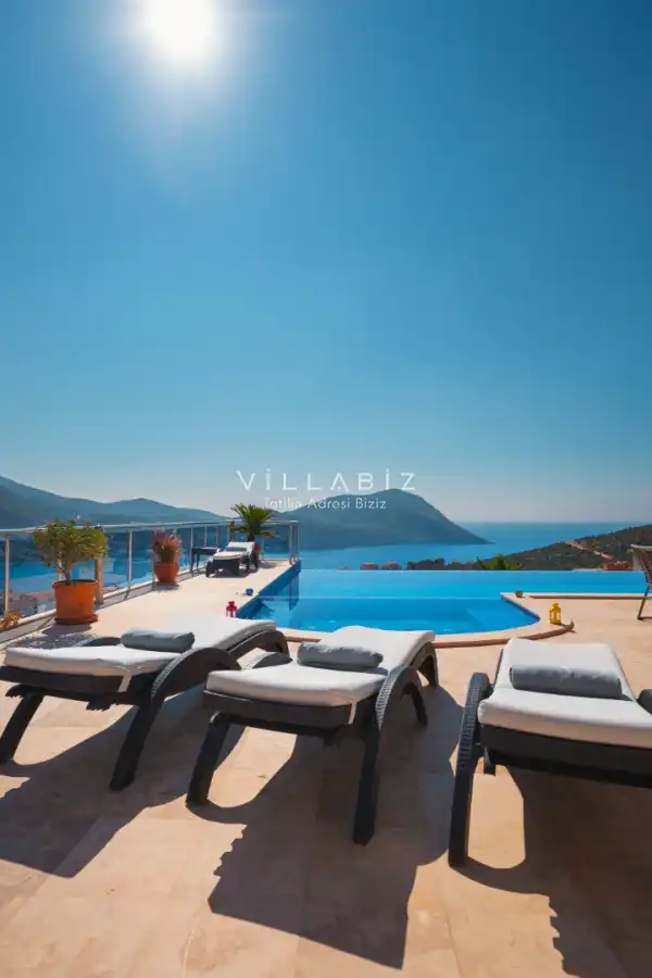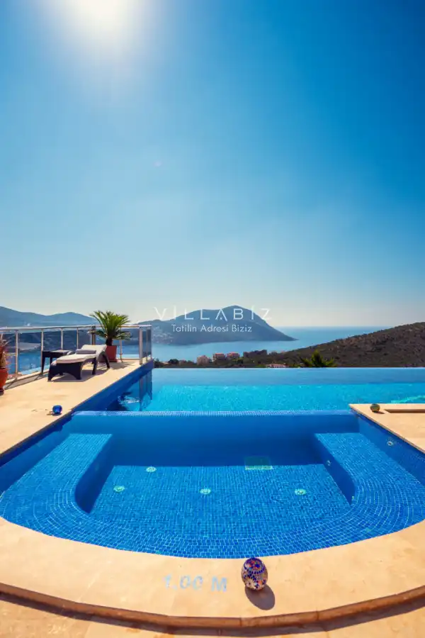 Muhteşem bir deniz manzarasına sahip olan villamız havuz terasının korunaklı yapısından dolayı ve balayı çiftleri için oldukça idealdir. Sevdiklerinizle birlikte günbatımına karşı içeceklerinizi yudumlayıp manzaranın tadını çıkarabilirsiniz. Villamızda bulunan jakuzi ise rahatlayıp tüm yılın yorgunluğunu üzerinizden atmanıza yardımcı olacaktır.