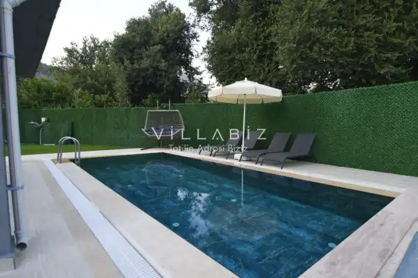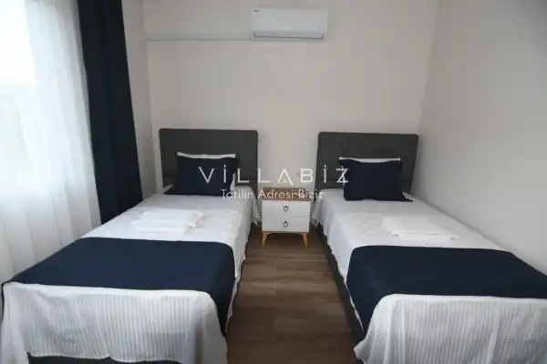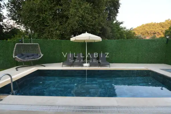 Toplam 2 yatak odasından oluşmuş, 4 kişi konaklama kapasitesine sahiptir. Çekirdek aileler ve arkadaş grupları ve balayı çiftleri için oldukça idealdir. Oldukça şık ve modern bir şekilde döşenmiş olan villamızda misafirlerimiz için her şey düşünülmüştür. Havuz terasında bulunan şezlonglarda güneşlenebilir, bahçe masasında muhteşem yemekler yiyebilir, salıncakta sallanıp keyifli dakikalar geçirebilirsiniz.