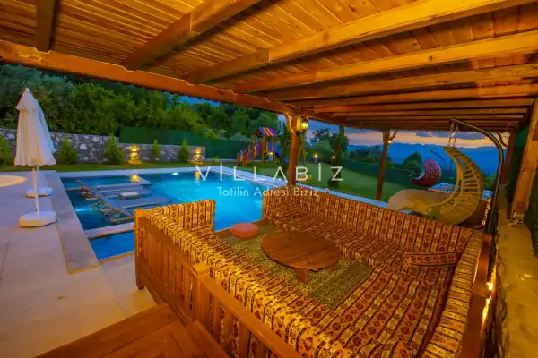 Fethiye Yakaköy mevkiinde konumlanan şirin bahçeli havuzu oldukça korunaklı villamızdır.Toplam 3 yatak odasından oluşmuş, 6 kişi konaklama kapasitesine sahiptir. Geniş aileler ve kalabalık arkadaş grupları için oldukça idealdir. Oldukça şık ve modern bir şekilde döşenmiş olan villamızda misafirlerimiz için her şey düşünülmüştür. Havuz terasında bulunan şezlonglarda güneşlenebilir, bahçe masasında muhteşem yemekler yiyebilir, salıncakta sallanıp keyifli dakikalar geçirebilirsiniz.