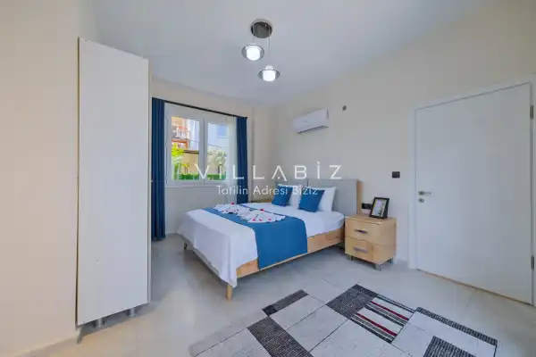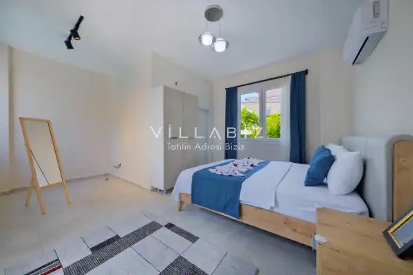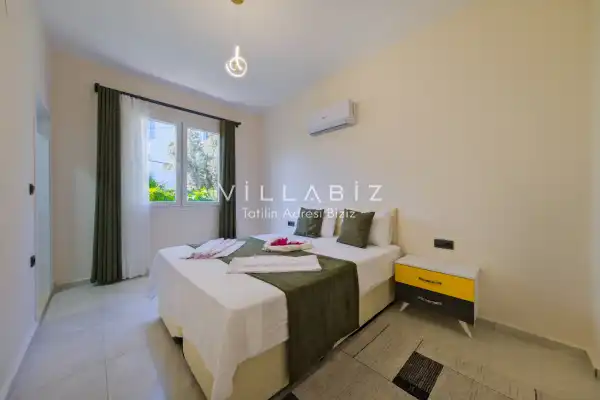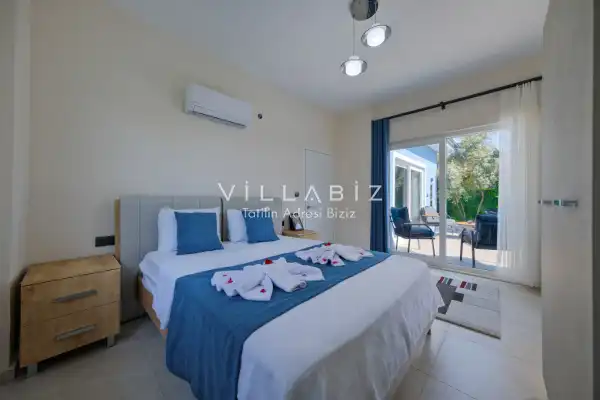Toplam 2 yatak odasından oluşmuş, 4 kişi konaklama kapasitesine sahiptir. Çekirdek aileler ve arkadaş grupları ve balayı çiftleri için oldukça idealdir. Oldukça şık ve modern bir şekilde döşenmiş olan villamızda misafirlerimiz için her şey düşünülmüştür. Havuz terasında bulunan şezlonglarda güneşlenebilir, bahçe masasında muhteşem yemekler yiyebilir, salıncakta sallanıp keyifli dakikalar geçirebilirsiniz.