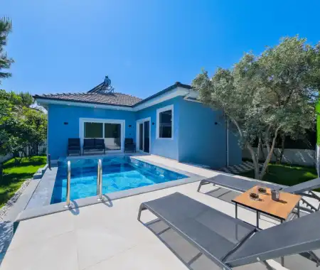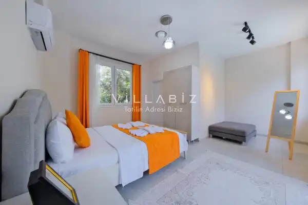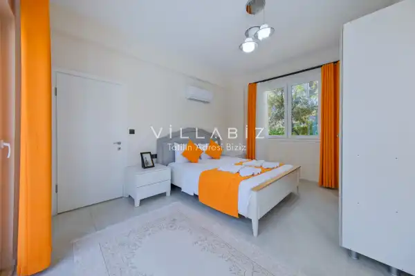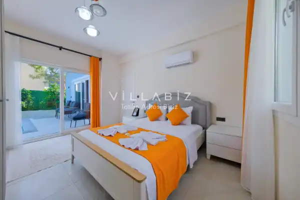 Toplam 2 yatak odasından oluşmuş, 4 kişi konaklama kapasitesine sahiptir. Çekirdek aileler ve arkadaş grupları ve balayı çiftleri için oldukça idealdir. Oldukça şık ve modern bir şekilde döşenmiş olan villamızda misafirlerimiz için her şey düşünülmüştür. Havuz terasında bulunan şezlonglarda güneşlenebilir, bahçe masasında muhteşem yemekler yiyebilir, salıncakta sallanıp keyifli dakikalar geçirebilirsiniz.