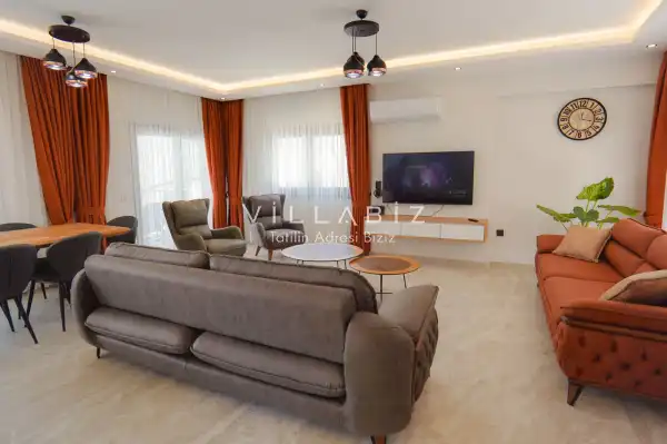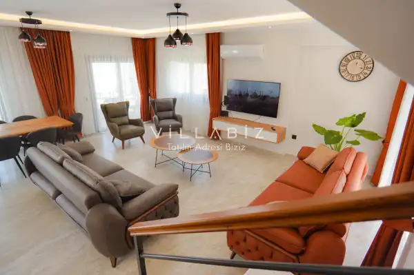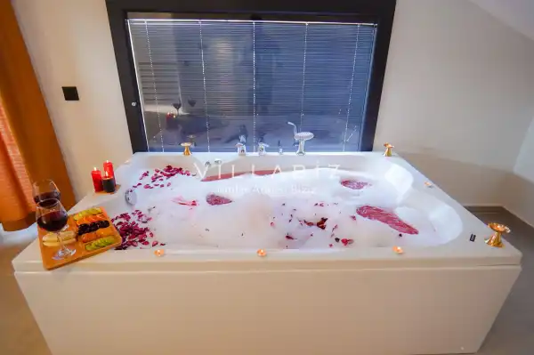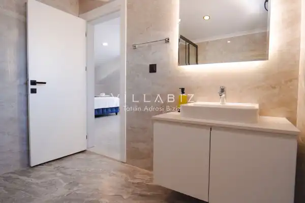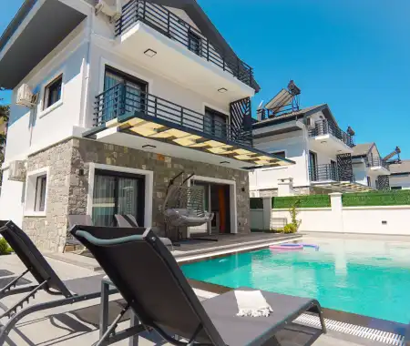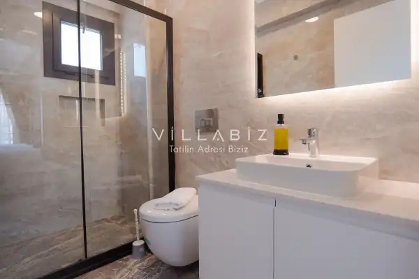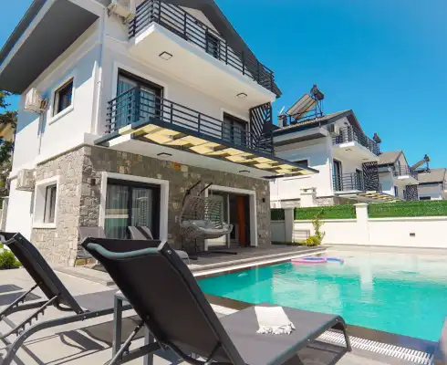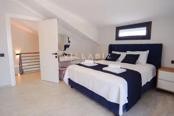 Toplam 3 yatak odasından oluşmuş, 6 kişi konaklama kapasitesine sahiptir. Geniş aileler ve kalabalık arkadaş grupları için oldukça idealdir. Oldukça şık ve modern bir şekilde döşenmiş olan villamızda misafirlerimiz için her şey düşünülmüştür. Havuz terasında bulunan şezlonglarda güneşlenebilir, bahçe masasında muhteşem yemekler yiyebilir, salıncakta sallanıp keyifli dakikalar geçirebilirsiniz.