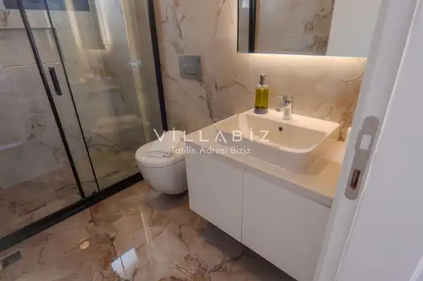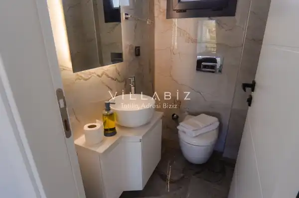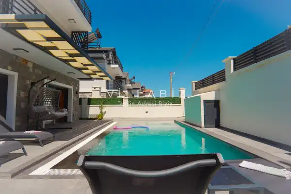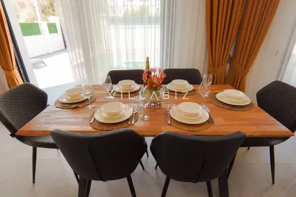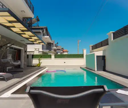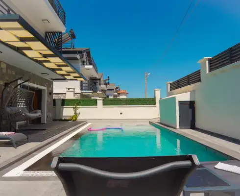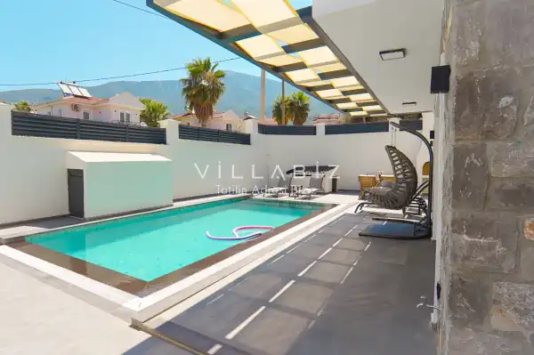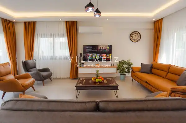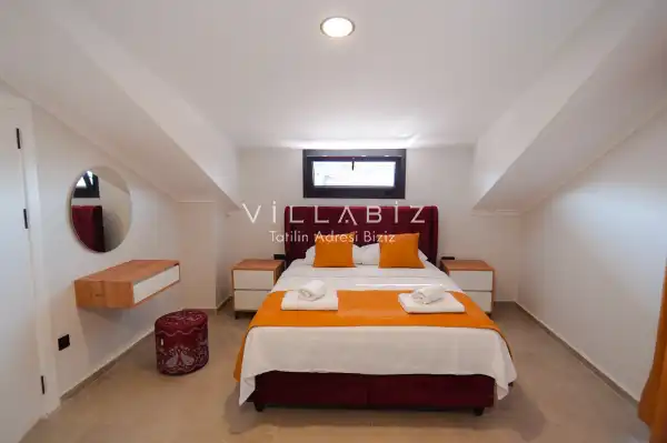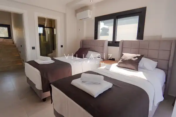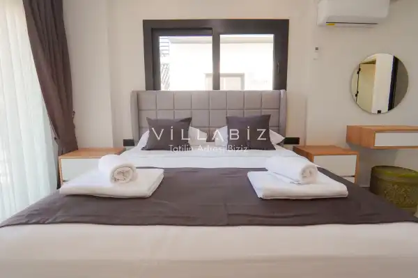 Toplam 3 yatak odasından oluşmuş, 6 kişi konaklama kapasitesine sahiptir. Geniş aileler ve kalabalık arkadaş grupları için oldukça idealdir. Oldukça şık ve modern bir şekilde döşenmiş olan villamızda misafirlerimiz için her şey düşünülmüştür. Havuz terasında bulunan şezlonglarda güneşlenebilir, bahçe masasında muhteşem yemekler yiyebilir, salıncakta sallanıp keyifli dakikalar geçirebilirsiniz.
