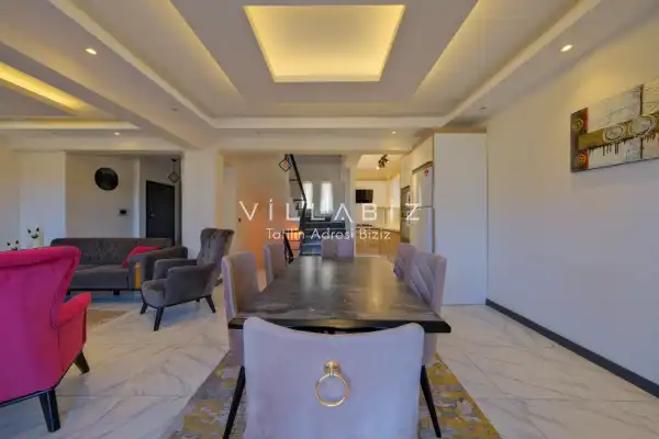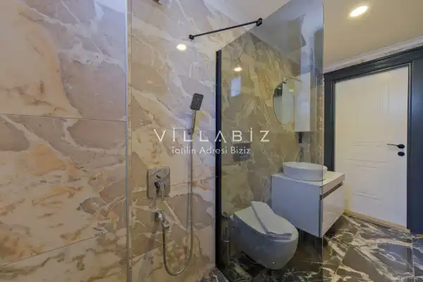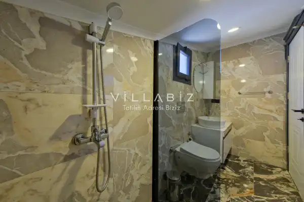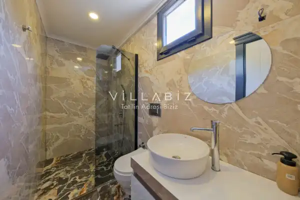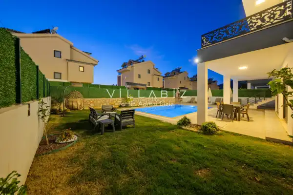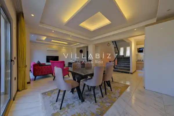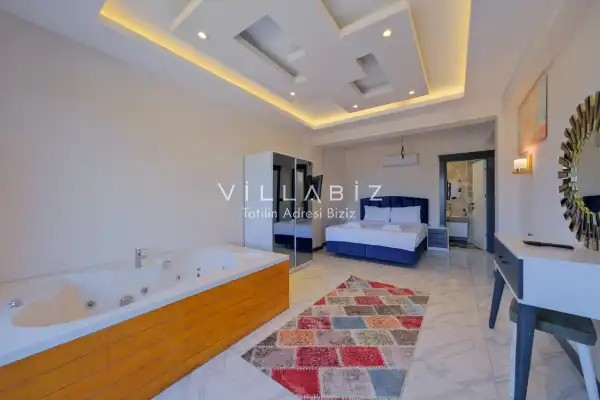 Toplam 4 yatak odasından oluşmuş, 8 kişi konaklama kapasitesine sahiptir. Geniş aileler ve kalabalık arkadaş grupları için oldukça idealdir. Oldukça şık ve modern bir şekilde döşenmiş olan villamızda misafirlerimiz için her şey düşünülmüştür. Havuz terasında bulunan şezlonglarda güneşlenebilir, bahçe masasında muhteşem yemekler yiyebilir, salıncakta sallanıp keyifli dakikalar geçirebilirsiniz.