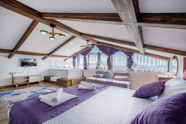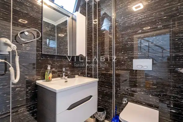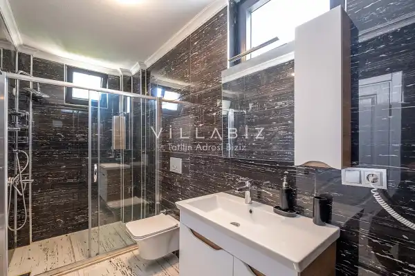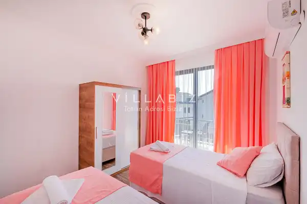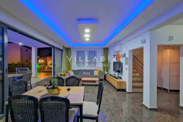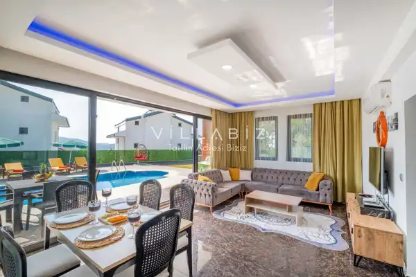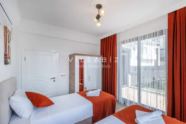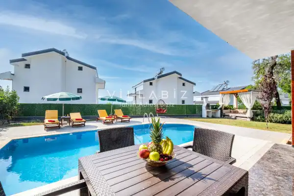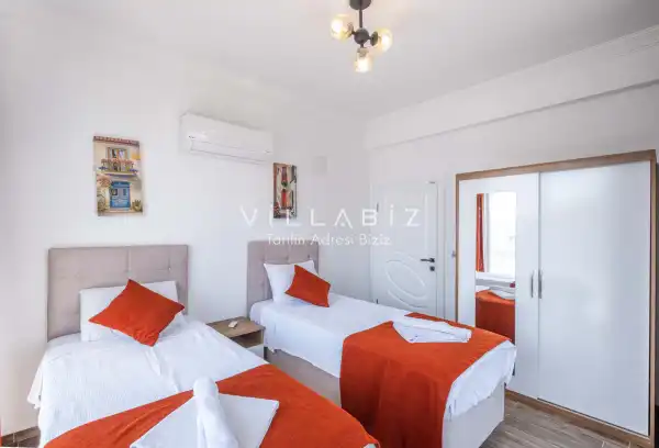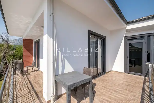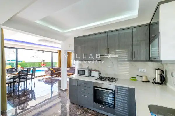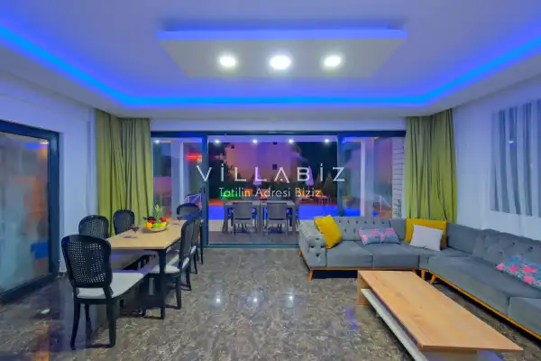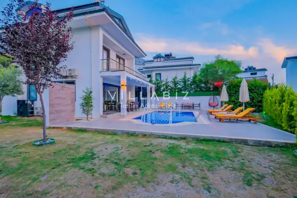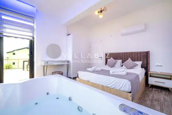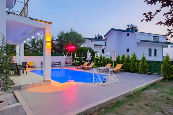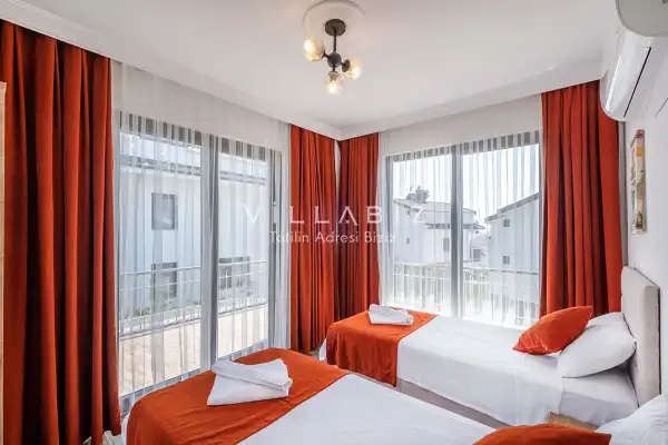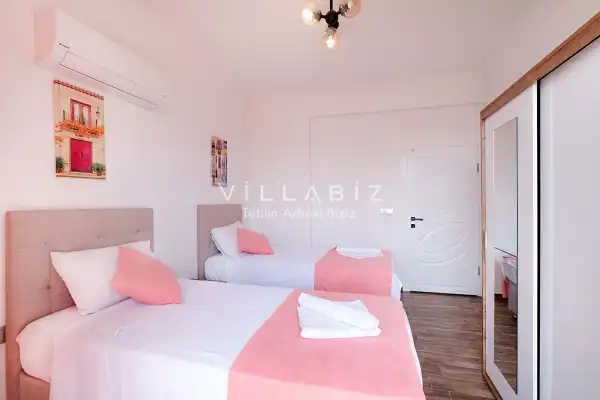 Toplam 4 yatak odasından oluşmuş, 8 kişi konaklama kapasitesine sahiptir. Geniş aileler ve kalabalık arkadaş grupları için oldukça idealdir. Oldukça şık ve modern bir şekilde döşenmiş olan villamızda misafirlerimiz için herşey düşünülmüştür. Havuz terasında bulunan şezlonglarda güneşlenebilir, bahçe masasında muhteşem yemekler yiyebilir, salıncakta sallanıp keyifli dakikalar geçirebilirsiniz.