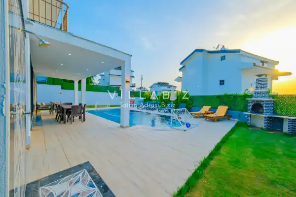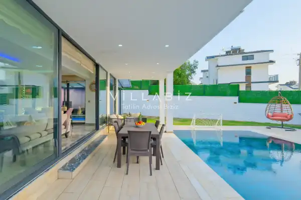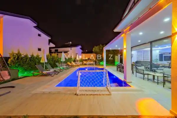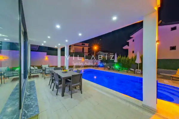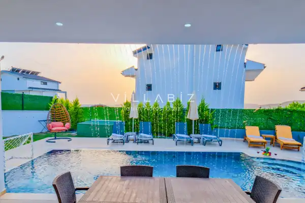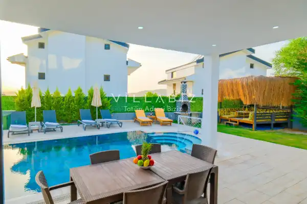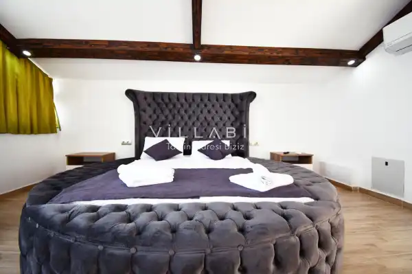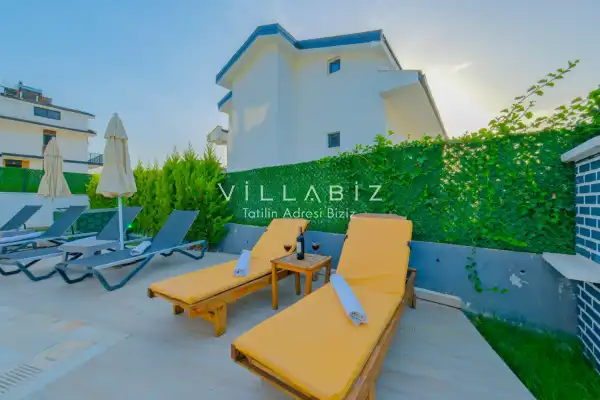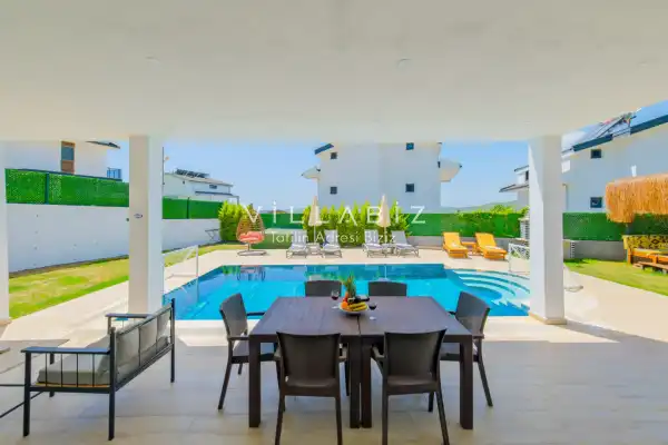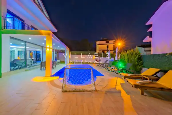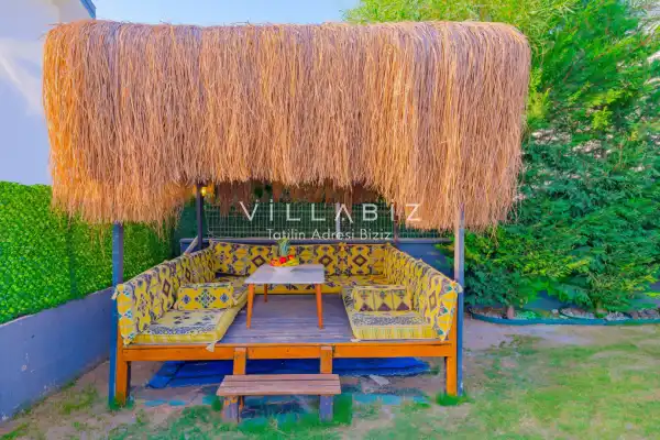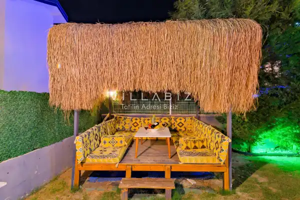 Toplam 4 yatak odasından oluşmuş, 8 kişi konaklama kapasitesine sahiptir. Geniş aileler ve kalabalık arkadaş grupları için oldukça idealdir. Oldukça şık ve modern bir şekilde döşenmiş olan villamızda misafirlerimiz için herşey düşünülmüştür. Havuz terasında bulunan şezlonglarda güneşlenebilir, bahçe masasında muhteşem yemekler yiyebilir, salıncakta sallanıp keyifli dakikalar geçirebilirsiniz.