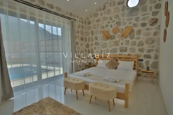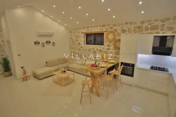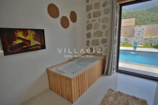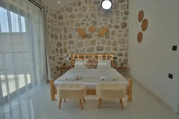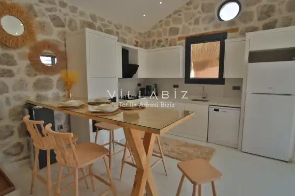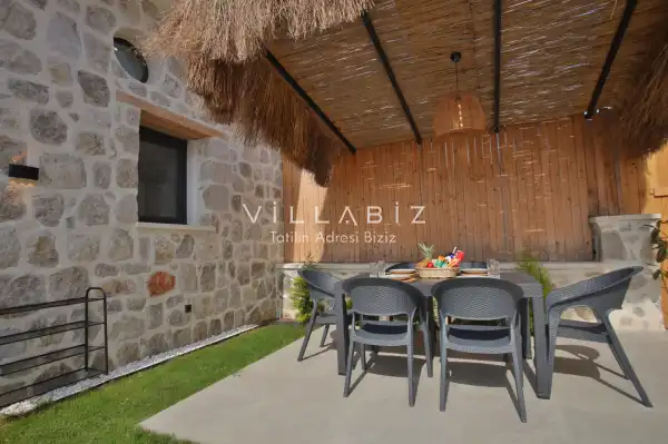 Villa Detay, 4 kişilik kapasiteye sahip villada 2 yatak odası yer alıyor. Açık mutfağı ve kendine ait bahçesi var. Mutfağında bulaşık makinesi, buzdolabı, ankastre fırın, ve mutfakta ihtiyaç olan hemen hemen bütün gereçler bulunuyor. Villanın bahçesinde özel havuzu mevcut. Barbekü, masa, sandalyeler, şezlonglar ve şemsiyeler bahçe keyfini sınırsız yaşamanıza imkan tanıyor. Salonunda oturma grubu, televizyon, eşyalar bulunurken, tüm odalar için ayrı klima imkanı var.