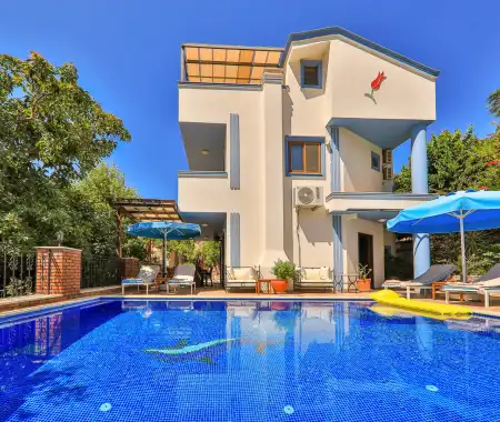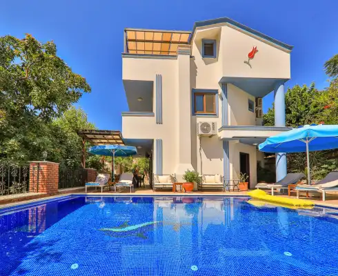 Villamız Antalya’nın en çok tercih edilen tatil bölgesi Kaş/Kalkan mevkiinde yer almaktadır. Masmavi koylara ve muhteşem adalar manzarasına hakim bir noktadadır. Doğa içerisinde, bol oksijenli tertemiz havasıyla konaklayanlarına sağlıklı ve dingin bir tatilin kapılarını aralamaktadır