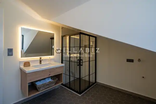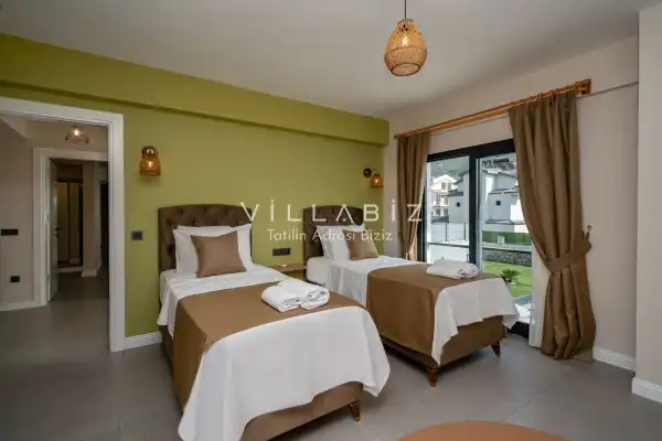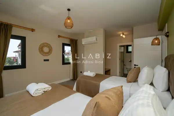 Toplam 3 yatak odasından oluşmuş, 6 kişi konaklama kapasitesine sahiptir. Geniş aileler ve kalabalık arkadaş grupları için oldukça idealdir. Oldukça şık ve modern bir şekilde döşenmiş olan villamızda misafirlerimiz için herşey düşünülmüştür. Havuz terasında bulunan şezlonglarda güneşlenebilir, bahçe masasında muhteşem yemekler yiyebilir, salıncakta sallanıp keyifli dakikalar geçirebilirsiniz.
