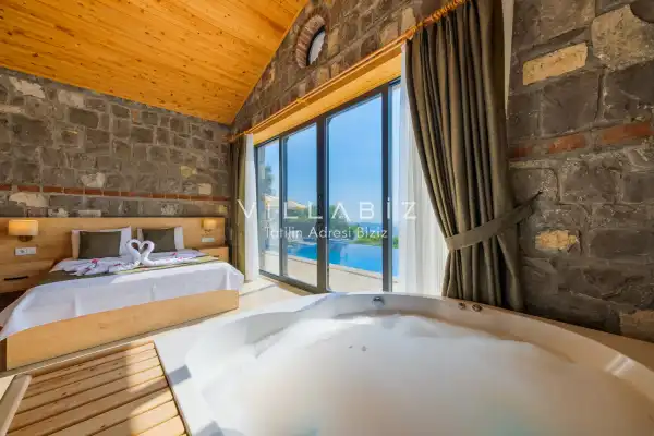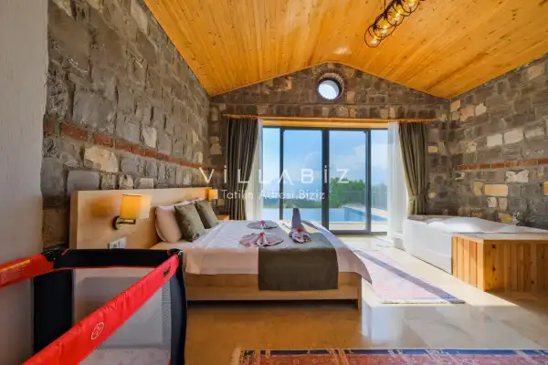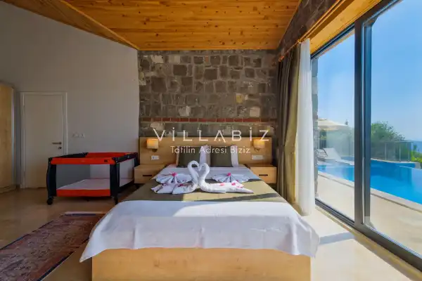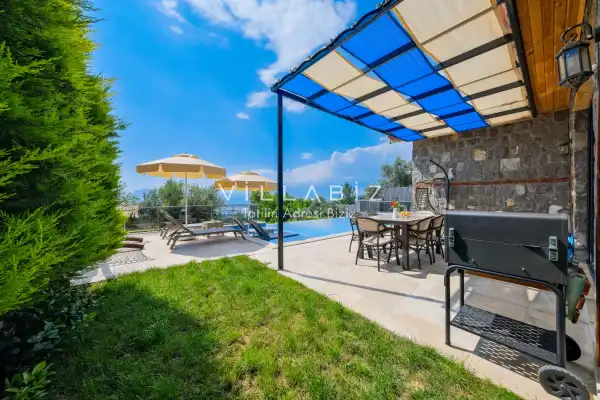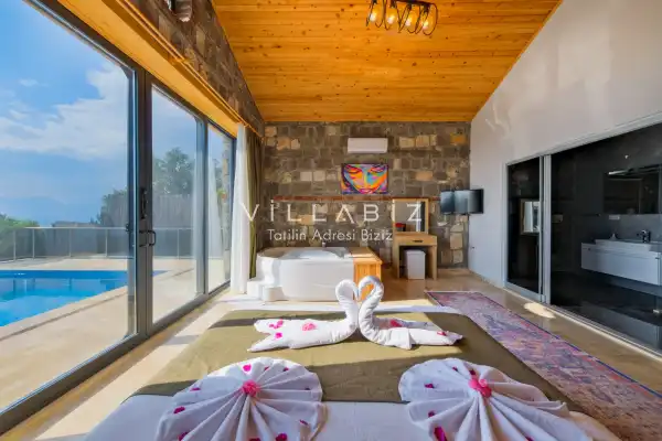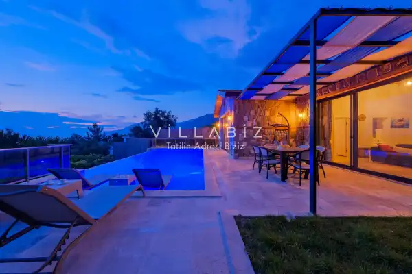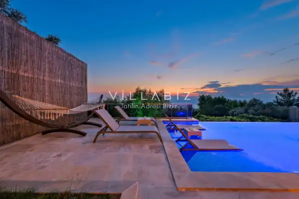 Villamız Antalya'nın en sakin ve Akdeniz koylarının masmavi büyüleyiciliğine sahip bölgesi Kalkan'ın Üzümlü mevkiinde yer almaktadır. Etrafını saran çam ve sedir ormanlarının, kusursuz maki iklimiyle birleştiği; sonunun hep sonsuz maviliklere eriştiği konumuyla kusursuz bir tatil isteyen balayı çiftlerimizin her anını özel ve unutulmaz kılmaktadır. Patara plajı, Kaputaş Plajı, Saklıkent Kanyonu, Gizlikent Şelalesi gibi turistik alanlara yakınlığıyla da trafiğe takılmadan etrafı keşfedecekleri bir tatil imkanı sunmaktadır.