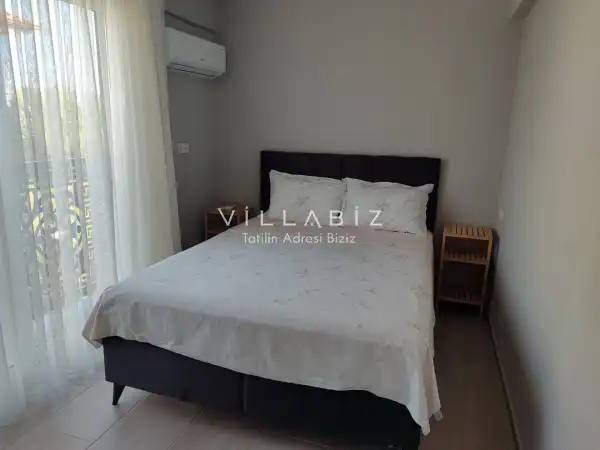 Toplam 4 yatak odasından oluşmuş, 8 kişi konaklama kapasitesine sahiptir. Geniş aileler ve kalabalık arkadaş grupları için oldukça idealdir. Oldukça şık ve modern bir şekilde döşenmiş olan villamızda misafirlerimiz için her şey düşünülmüştür. Havuz terasında bulunan şezlonglarda güneşlenebilir, bahçe masasında muhteşem yemekler yiyebilir keyifli dakikalar geçirebilirsiniz.