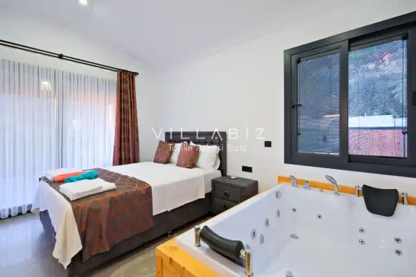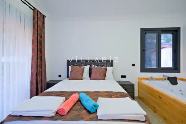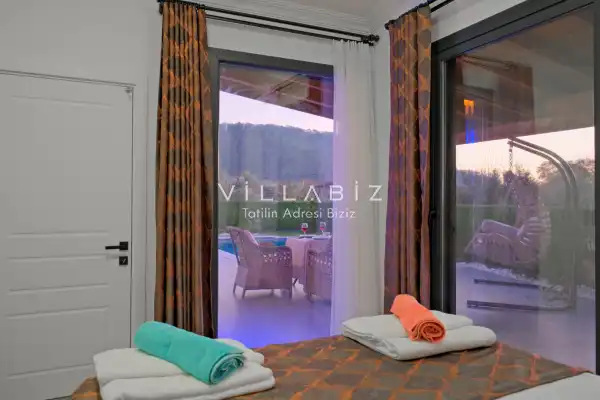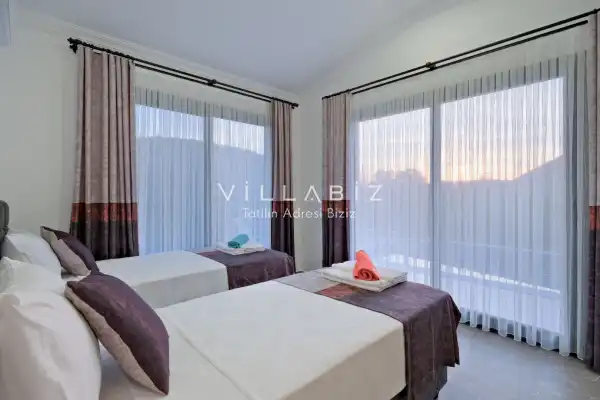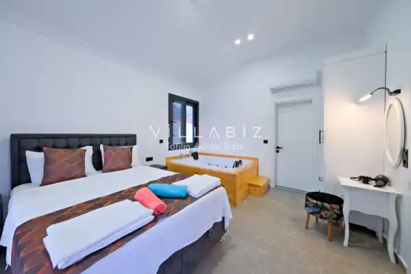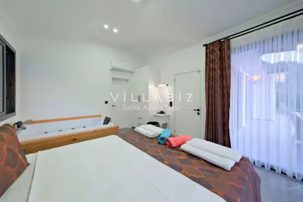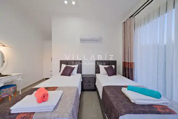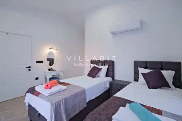 Toplam 2 yatak odasından oluşmuş, 4 kişi konaklama kapasitesine sahiptir. Geniş aileler ve kalabalık arkadaş grupları için oldukça idealdir. Oldukça şık ve modern bir şekilde döşenmiş olan villamızda misafirlerimiz için herşey düşünülmüştür. Havuz terasında bulunan şezlonglarda güneşlenebilir, bahçe masasında muhteşem yemekler yiyebilir, salıncakta sallanıp keyifli dakikalar geçirebilirsiniz.