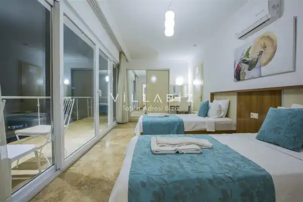 Villamız Antalya’nın en çok tercih edilen tatil bölgesi Kaş/Kalkan Kızıltaş mevkiinde yer almaktadır. Masmavi koylara ve muhteşem adalar manzarasına hakim bir noktadadır. Doğa içerisinde, bol oksijenli tertemiz havasıyla konaklayanlarına sağlıklı ve dingin bir tatilin kapılarını aralamaktadır
