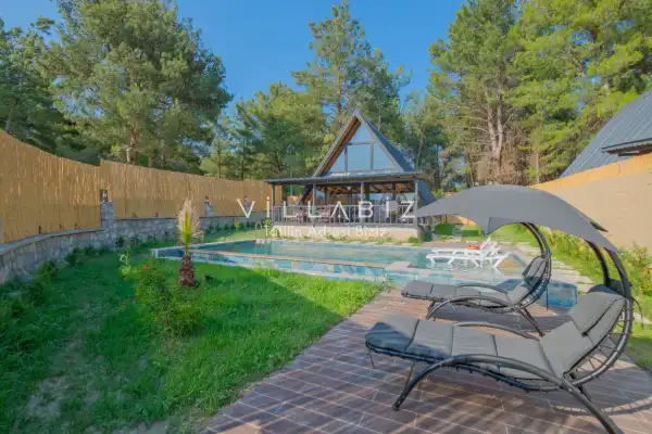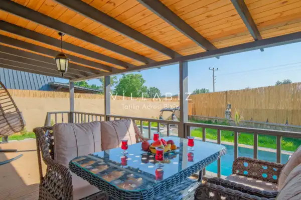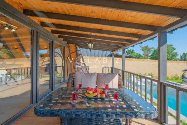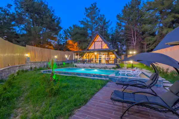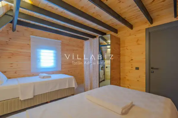 Toplam 2 yatak odasından oluşmuş, 4 kişi konaklama kapasitesine sahiptir. Çekirdek aileler ve arkadaş grupları ve balayı çiftleri  için oldukça idealdir. Oldukça şık ve modern bir şekilde döşenmiş olan villamızda misafirlerimiz için her şey düşünülmüştür. Havuz terasında bulunan şezlonglarda güneşlenebilir, bahçe masasında muhteşem yemekler yiyebilir, salıncakta sallanıp keyifli dakikalar geçirebilirsiniz.