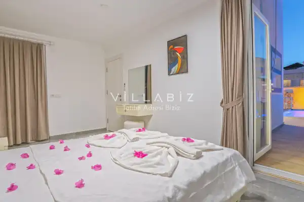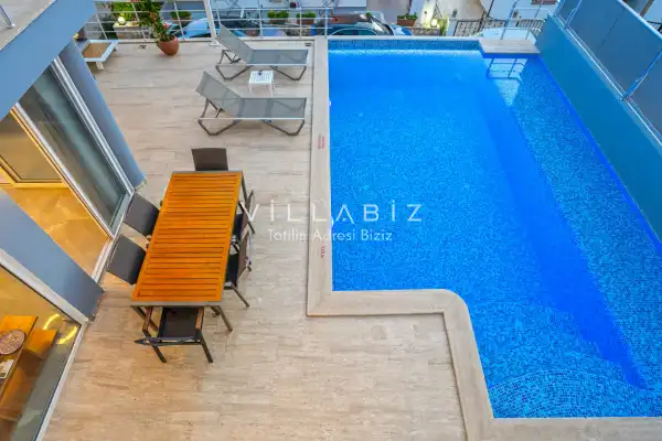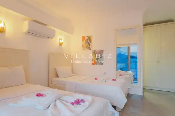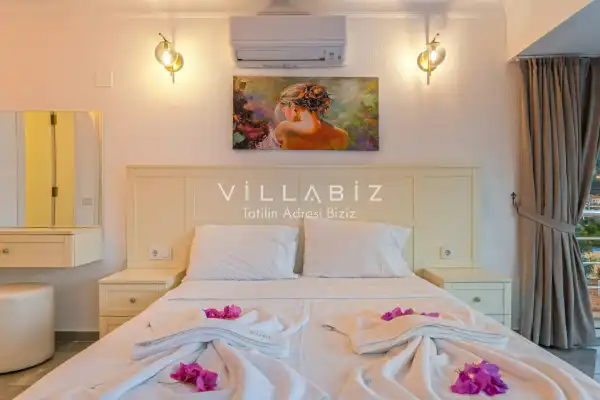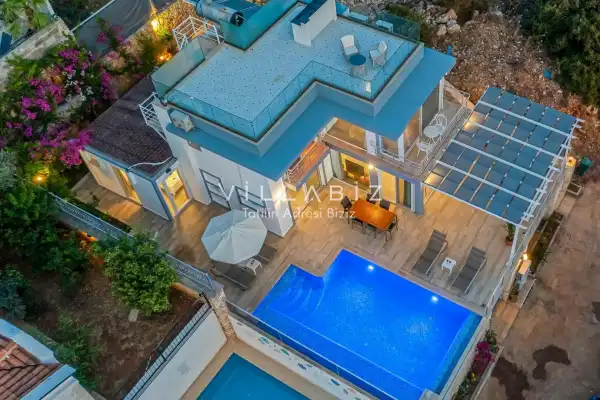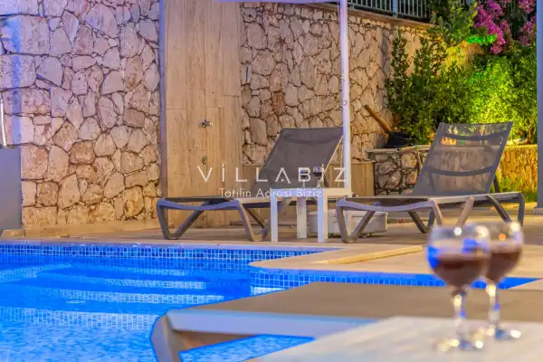 Villamız Antalya’nın en çok tercih edilen tatil bölgesi Kaş/Kalkan mevkiinde yer almaktadır. Masmavi koylara ve muhteşem adalar manzarasına hakim bir noktadadır. Doğa içerisinde, bol oksijenli tertemiz havasıyla konaklayanlarına sağlıklı ve dingin bir tatilin kapılarını aralamaktadır