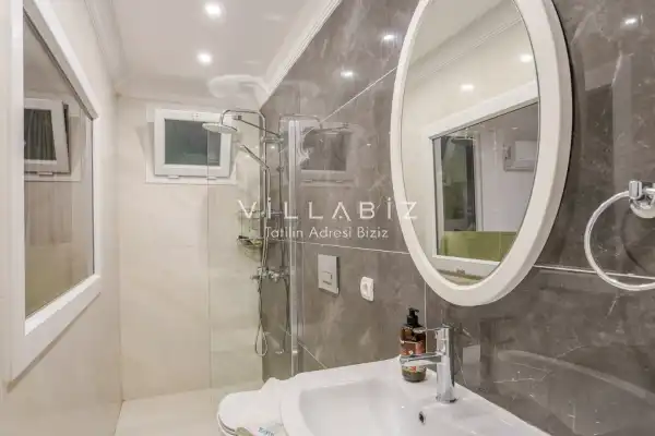Villa Ecrin Kışla, 6 kişilik kapasiteye sahip villada 3 yatak odası yer alıyor. Villanın birer banyosu ve mevcut. Açık mutfağı ve kendine ait bahçesinde bir havuzu var. Mutfağında bulaşık makinesi, buzdolabı, ankastre fırın, tost makinesi ve mutfakta ihtiyaç olan hemen hemen bütün gereçler bulunuyor. Barbekü, masa, sandalyeler, şezlonglar ve şemsiyeler bahçe keyfini sınırsız yaşamanıza imkan tanıyor. Salonunda oturma grubu, televizyon, eşyalar bulunurken, tüm odalar için ayrı klima imkanı var.