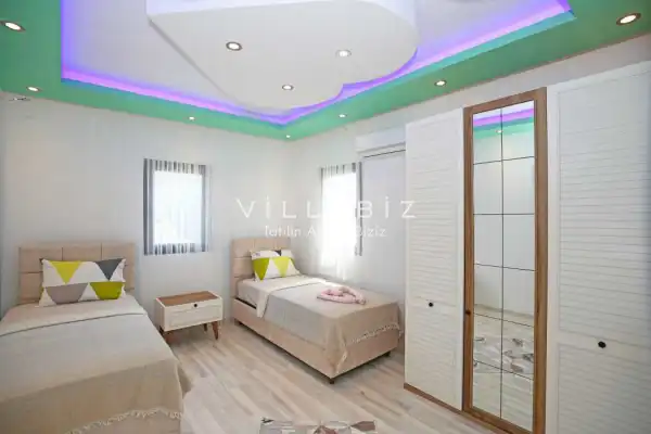 Villa Ecrinsu 4 kişilik kapasiteye sahip villada 2 yatak odası yer alıyor. Villanın 2 banyosu mevcut. Açık mutfağı ve kendine ait bahçesinde bir havuzu var. Mutfağında bulaşık makinesi, buzdolabı, ankastre fırın, tost makinesi ve mutfakta ihtiyaç olan hemen hemen bütün gereçler bulunuyor. Barbekü, masa, sandalyeler, şezlonglar ve şemsiyeler bahçe keyfini sınırsız yaşamanıza imkan tanıyor. Salonunda oturma grubu, televizyon, eşyalar bulunurken, tüm odalar için ayrı klima imkanı var.