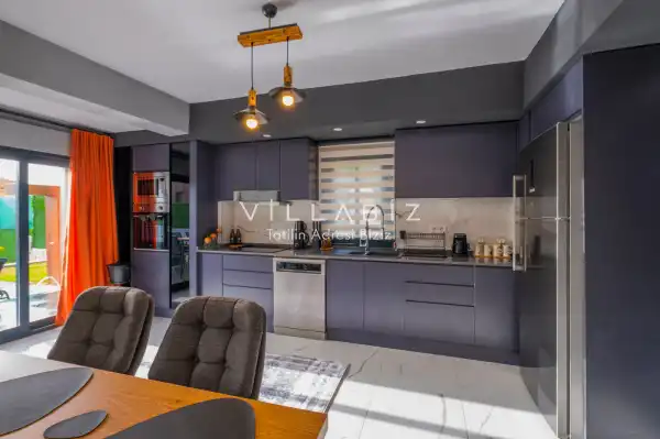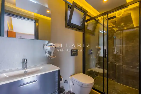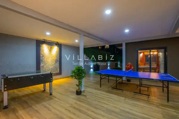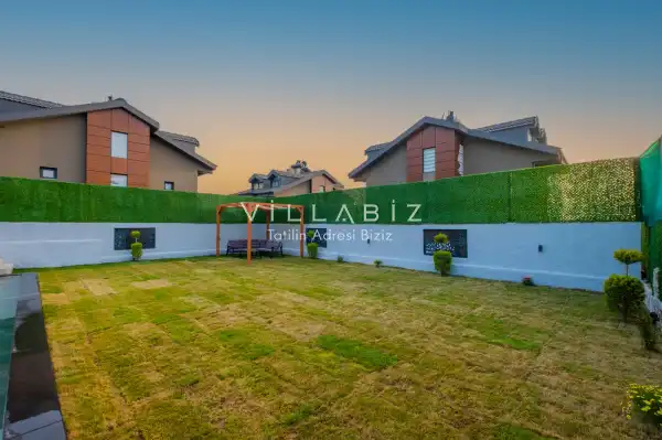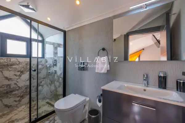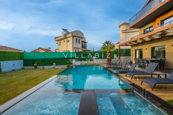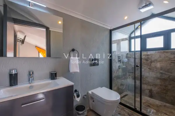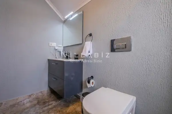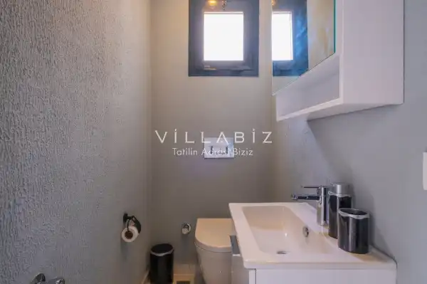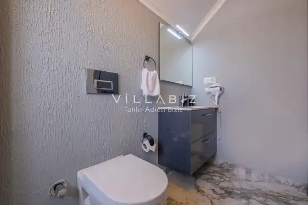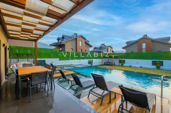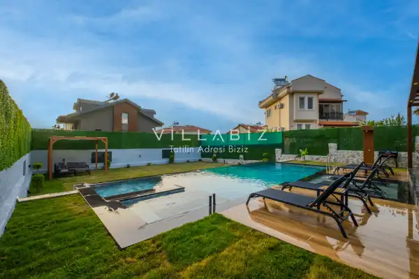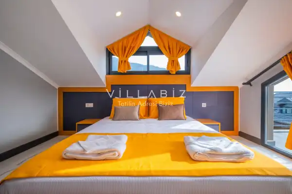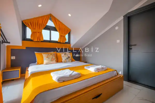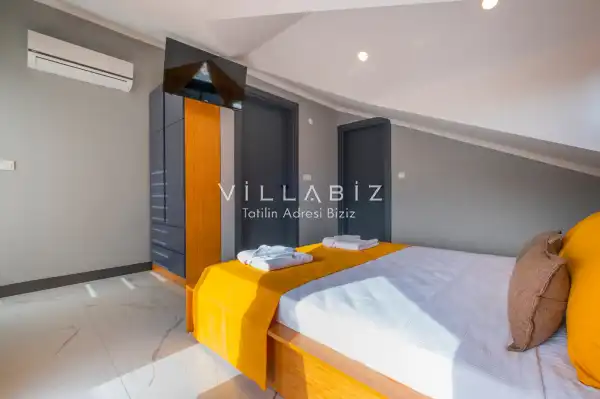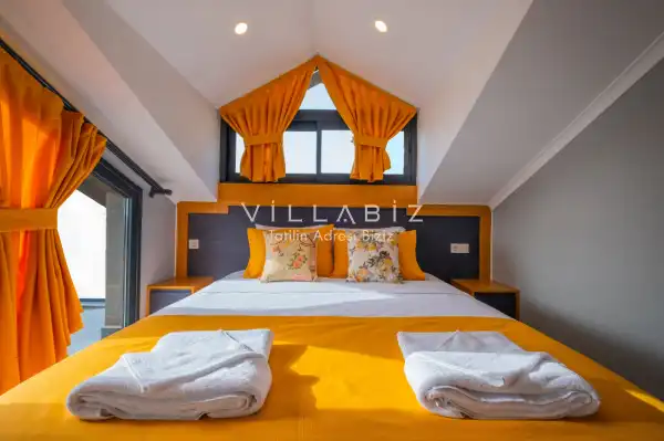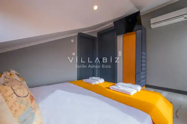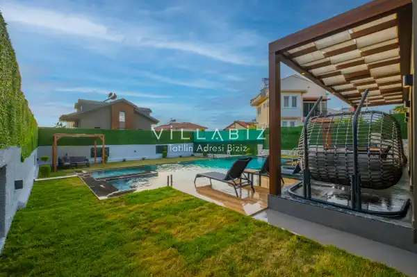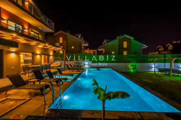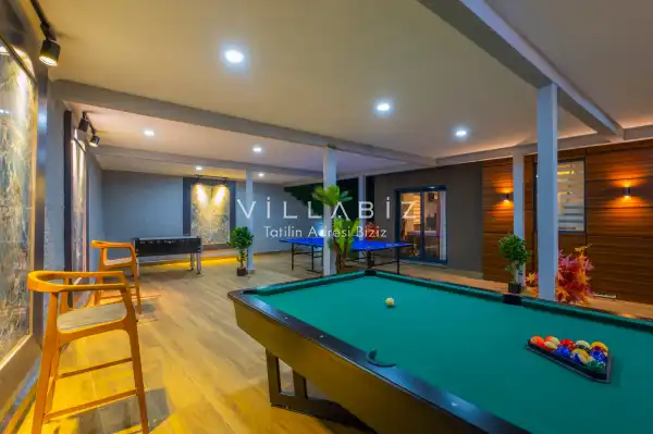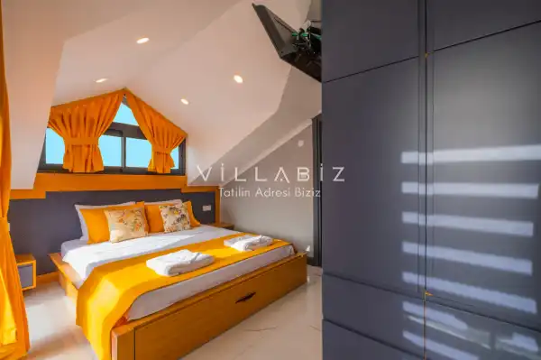 Toplam 8 yatak odasından oluşmuş, 4 kişi konaklama kapasitesine sahiptir. Geniş aileler ve kalabalık arkadaş grupları için oldukça idealdir. Oldukça şık ve modern bir şekilde döşenmiş olan villamızda misafirlerimiz için herşey düşünülmüştür. Havuz terasında bulunan şezlonglarda güneşlenebilir, bahçe masasında muhteşem yemekler yiyebilir, salıncakta sallanıp keyifli dakikalar geçirebilirsiniz.Ayrıca; Çocuk havuzu bulunmaktadır boyutları: 2 m x 2 m’dir. Havuza entegre jakuzi mevcuttur.