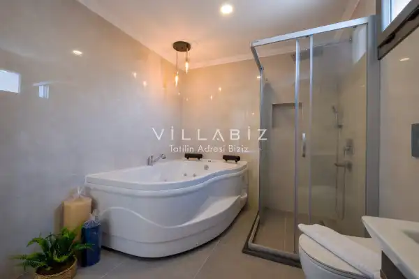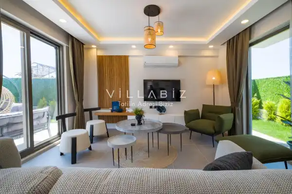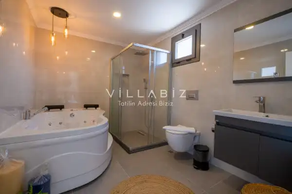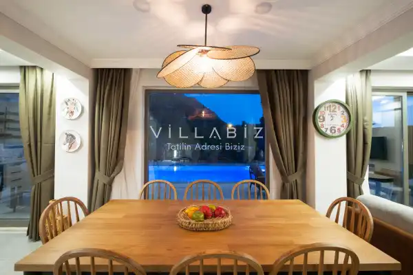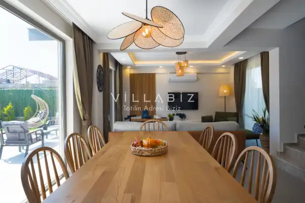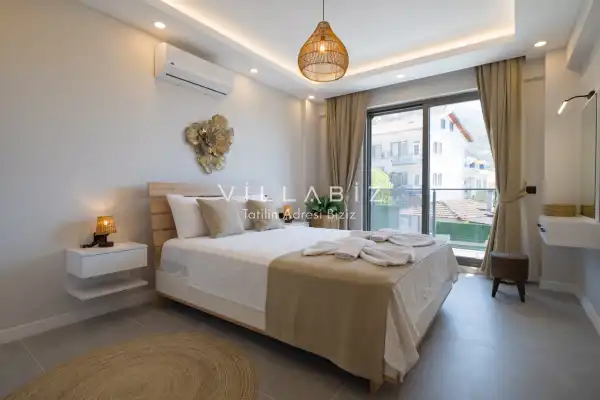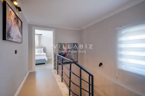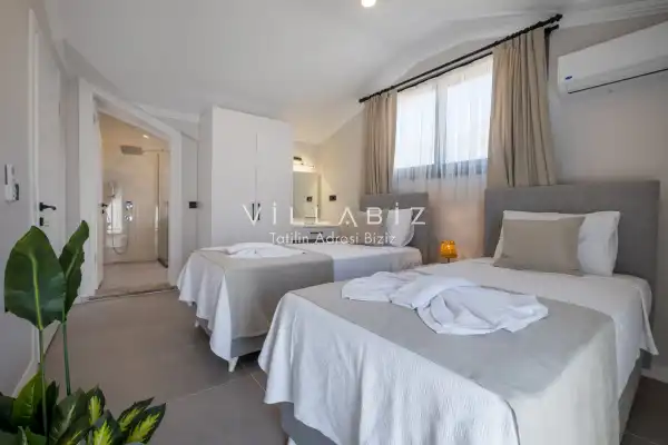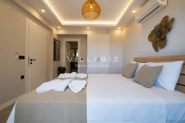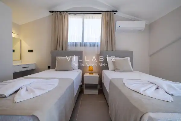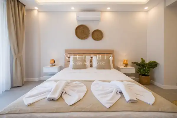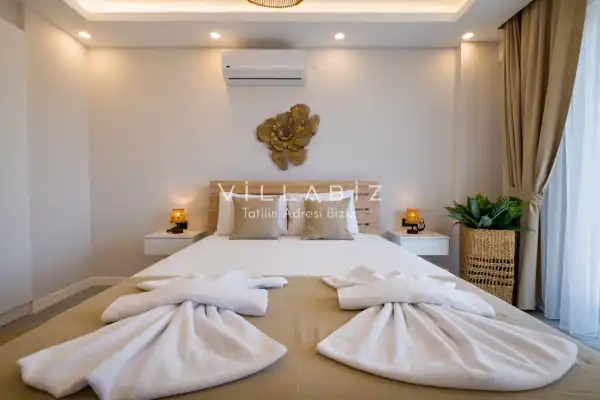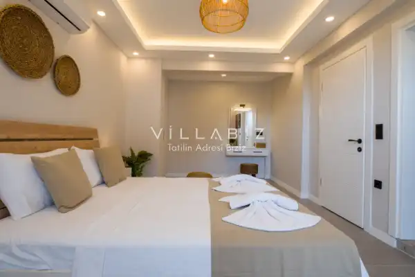 Toplam 4 yatak odasından oluşmuş,8 kişi konaklama kapasitesine sahiptir. Geniş aileler ve kalabalık arkadaş grupları için oldukça idealdir. Oldukça şık ve modern bir şekilde döşenmiş olan villamızda misafirlerimiz için herşey düşünülmüştür. Havuz terasında bulunan şezlonglarda güneşlenebilir, bahçe masasında muhteşem yemekler yiyebilir, salıncakta sallanıp keyifli dakikalar geçirebilirsiniz.