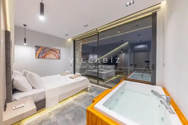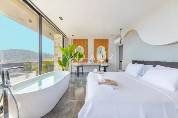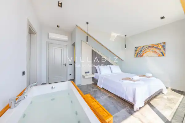 Muhteşem bir deniz manzarasına sahip olan villamız havuz terasının korunaklı yapısından dolayı ve balayı çiftleri ve arkadaş grupları için oldukça idealdir. Sevdiklerinizle birlikte günbatımına karşı içeceklerinizi yudumlayıp manzaranın tadını çıkarabilirsiniz. Villamızda bulunan jakuzi ise rahatlayıp tüm yılın yorgunluğunu üzerinizden atmanıza yardımcı olacaktır.