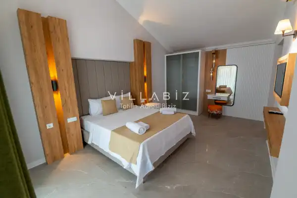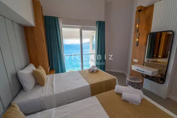 Muhteşem bir deniz manzarasına sahip olan villamız havuz terasının korunaklı yapısından dolayı ve balayı çiftleri için oldukça idealdir. Sevdiklerinizle birlikte günbatımına karşı içeceklerinizi yudumlayıp manzaranın tadını çıkarabilirsiniz. Villamızda bulunan jakuzi ise rahatlayıp tüm yılın yorgunluğunu üzerinizden atmanıza yardımcı olacaktır.