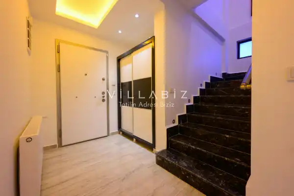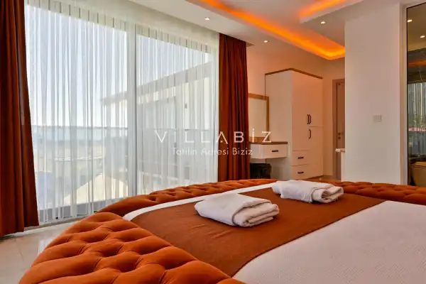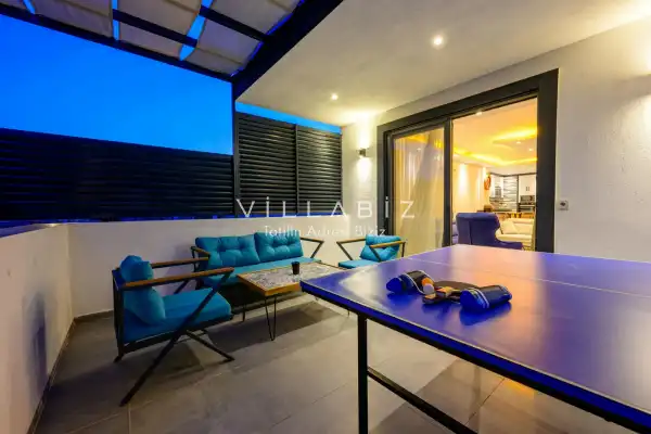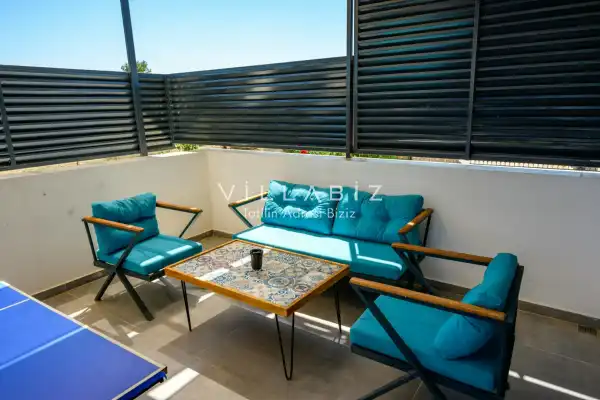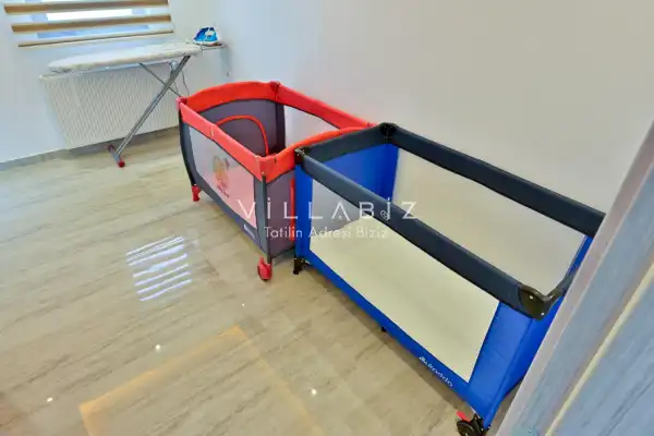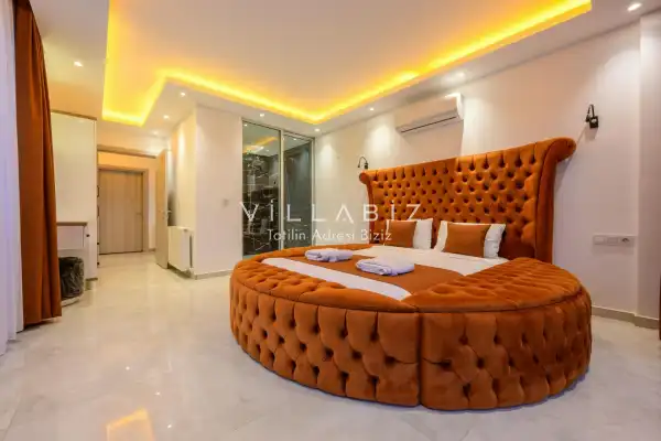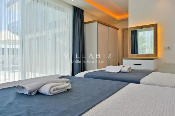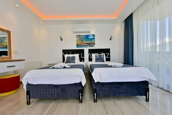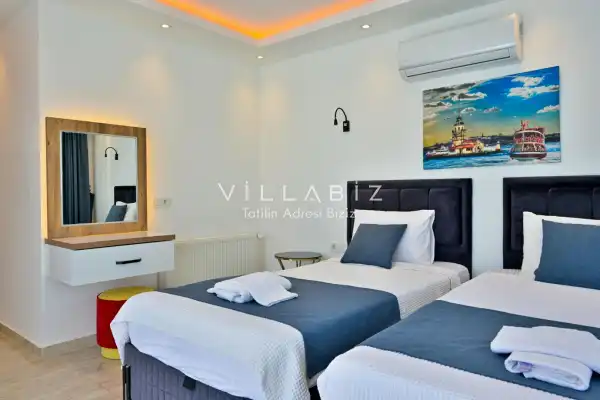 Toplam 3 yatak odasından oluşmuş, 6 kişi konaklama kapasitesine sahiptir. Geniş aileler ve kalabalık arkadaş grupları için oldukça idealdir. Oldukça şık ve modern bir şekilde döşenmiş olan villamızda misafirlerimiz için her şey düşünülmüştür. Havuz terasında bulunan şezlonglarda güneşlenebilir, bahçe masasında muhteşem yemekler yiyebilir, salıncakta sallanıp keyifli dakikalar geçirebilirsiniz.