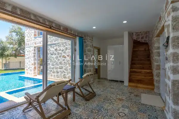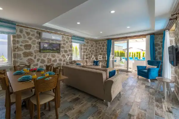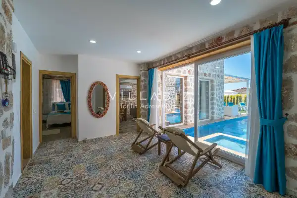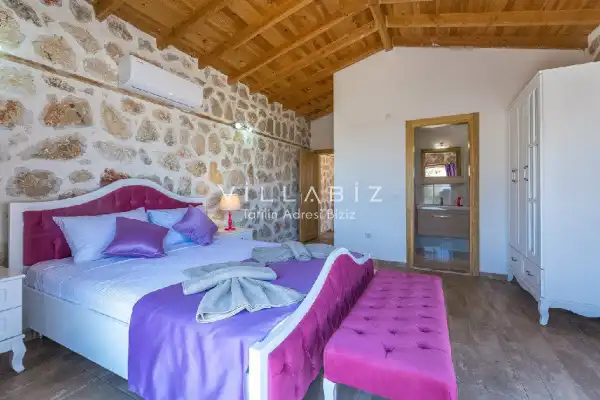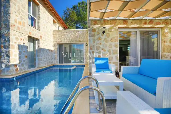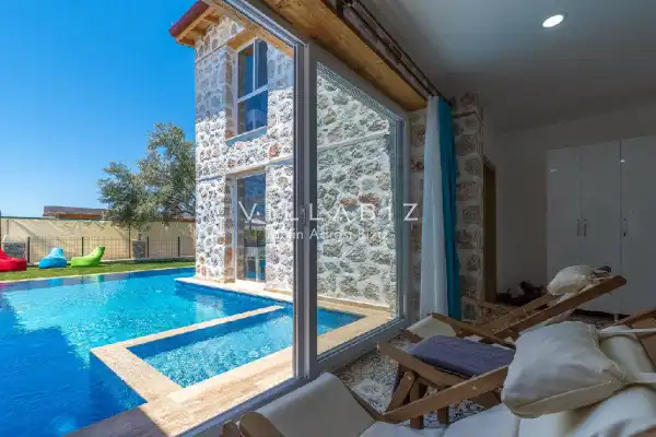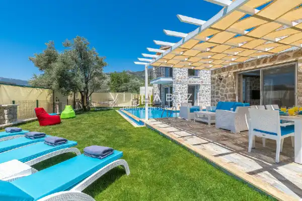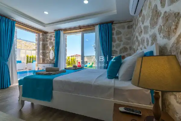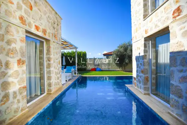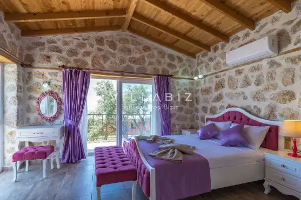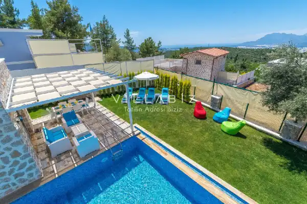 Villamız Antalya'nın en sakin ve Akdeniz koylarının masmavi büyüleyiciliğine sahip bölgesi Kalkan'ın Üzümlü mevkiinde yer almaktadır. Etrafını saran çam ve sedir ormanlarının, kusursuz maki iklimiyle birleştiği; sonunun hep sonsuz maviliklere eriştiği konumuyla kusursuz bir tatil isteyen balayı çiftlerimizin her anını özel ve unutulmaz kılmaktadır. Patara plajı, Kaputaş Plajı, Saklıkent Kanyonu, Gizlikent Şelalesi gibi turistik alanlara yakınlığıyla da trafiğe takılmadan etrafı keşfedecekleri bir tatil imkanı sunmaktadır.