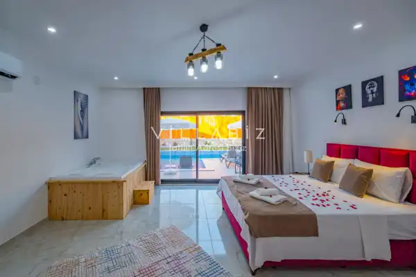 Villamız Antalya’nın en çok tercih edilen tatil bölgesi Kaş/Kalkan mevkiinde yer almaktadır. Masmavi koylara ve muhteşem adalar manzarasına hakim bir noktadadır. Doğa içerisinde, bol oksijenli tertemiz havasıyla konaklayanlarına sağlıklı ve dingin bir tatilin kapılarını aralamaktadır
